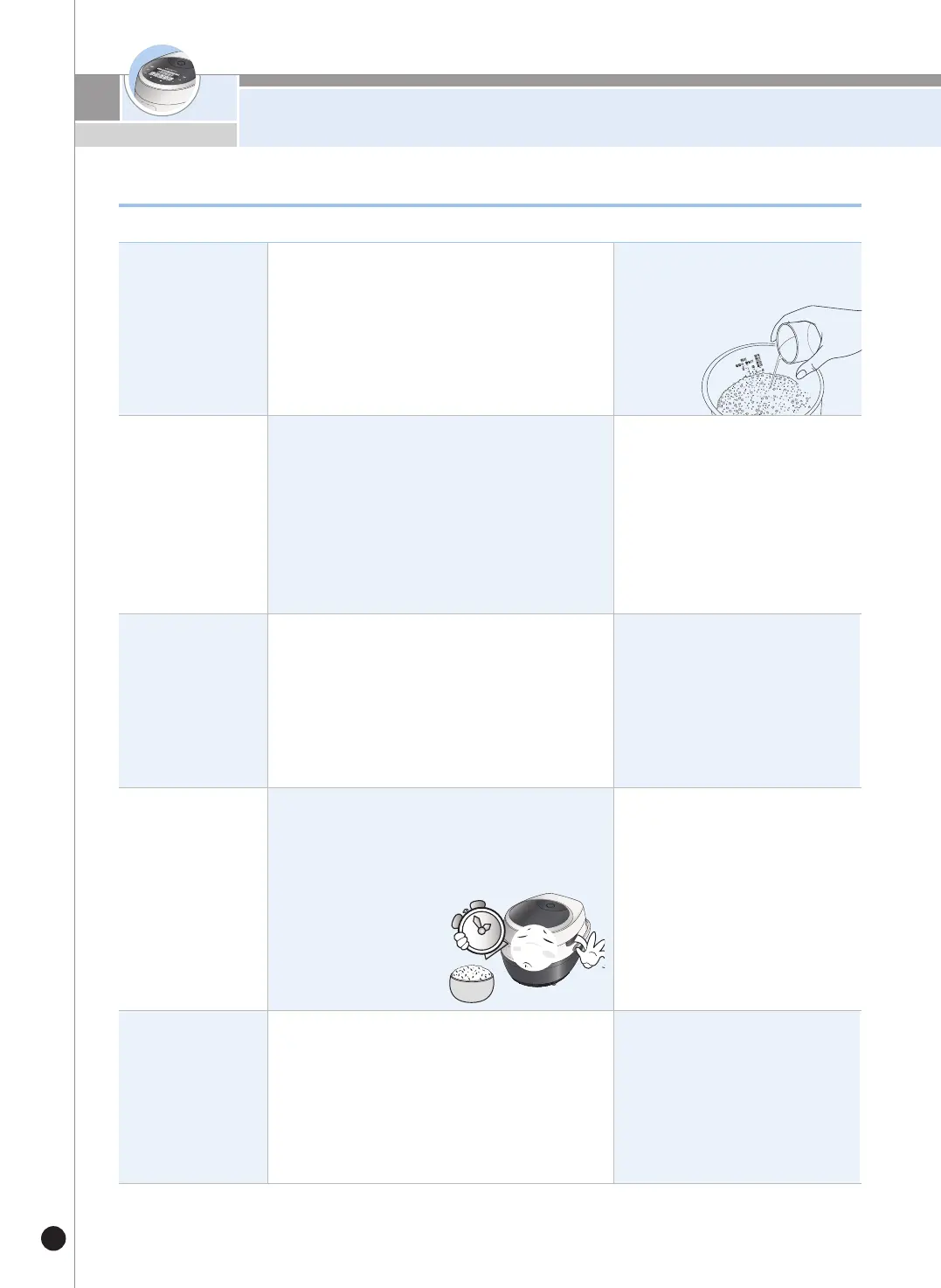 • 쌀이 많이 말라 있는 경우는 가급적 예약취사를