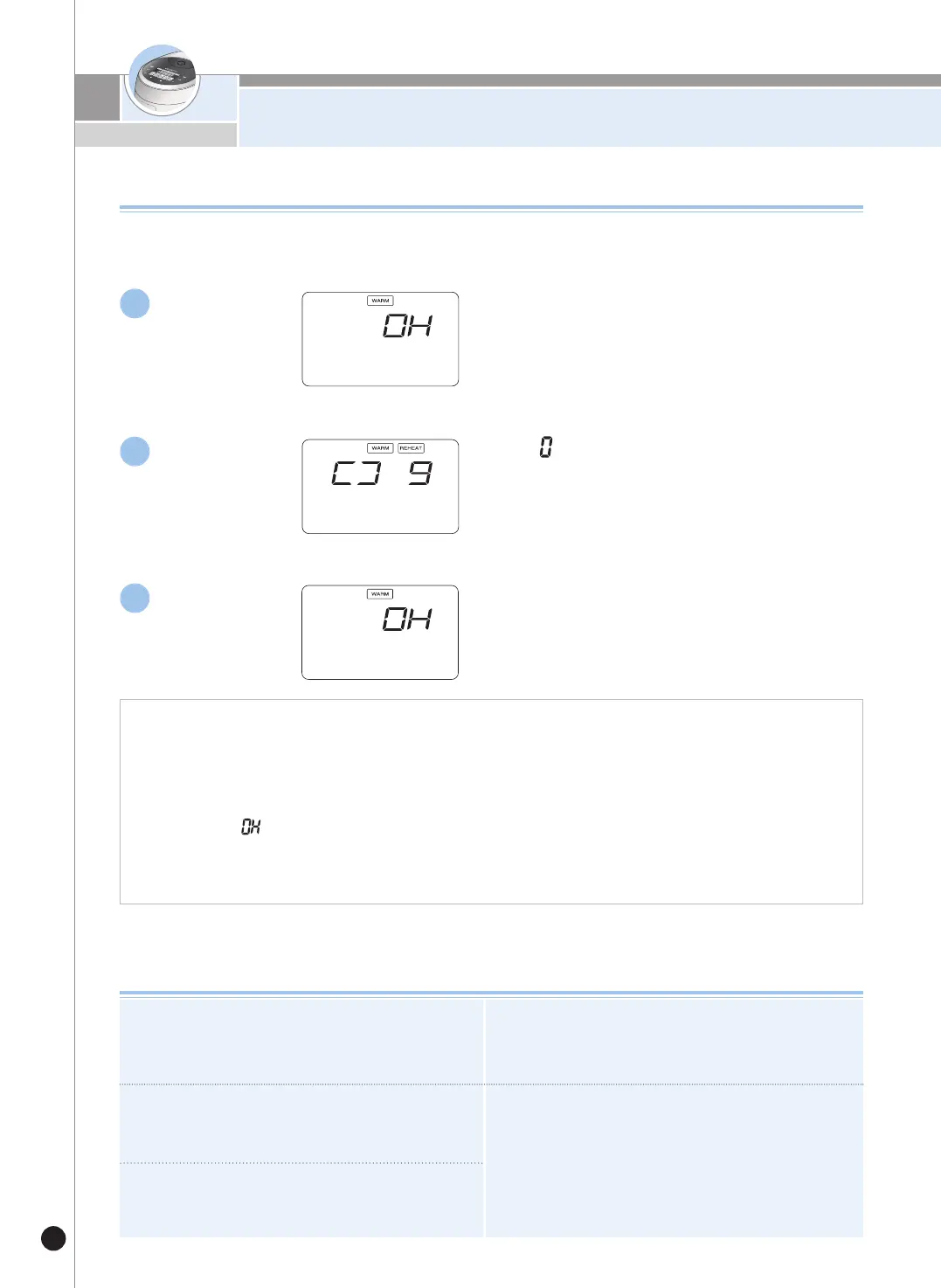At this time, ' ' is shown on the display. (Like this, transferring hot rice to a cold cooker may cause the