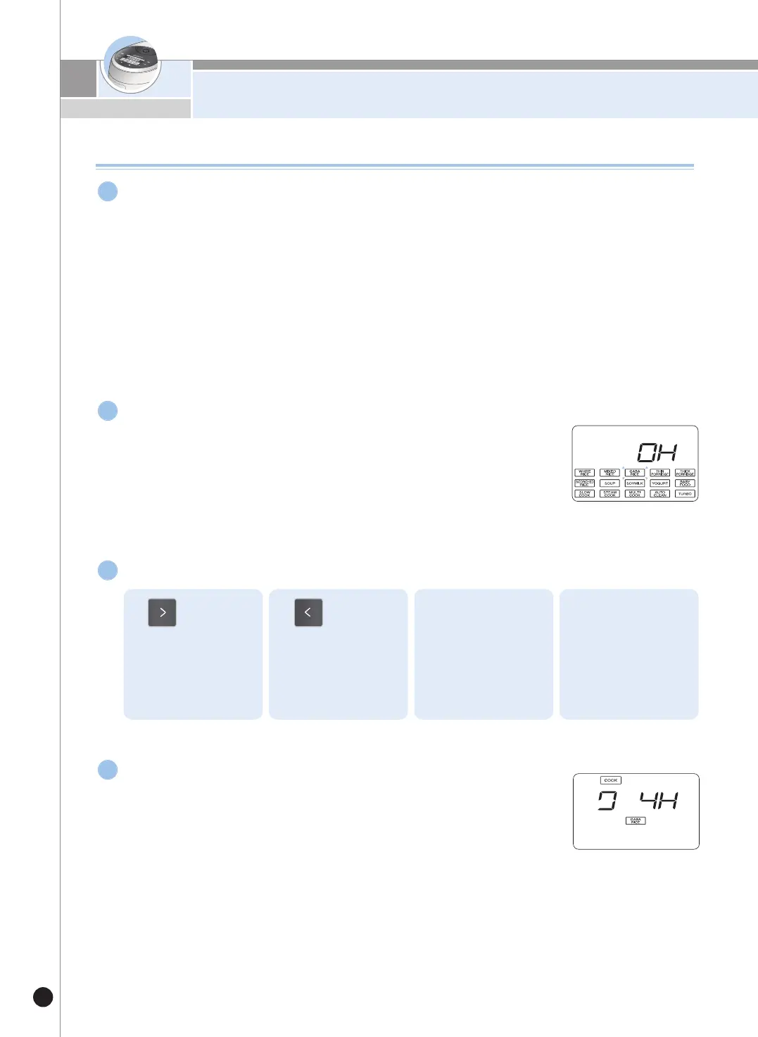 현미/발아 메뉴가 선택되었을 때는 표시부에 0H표시됩니다.