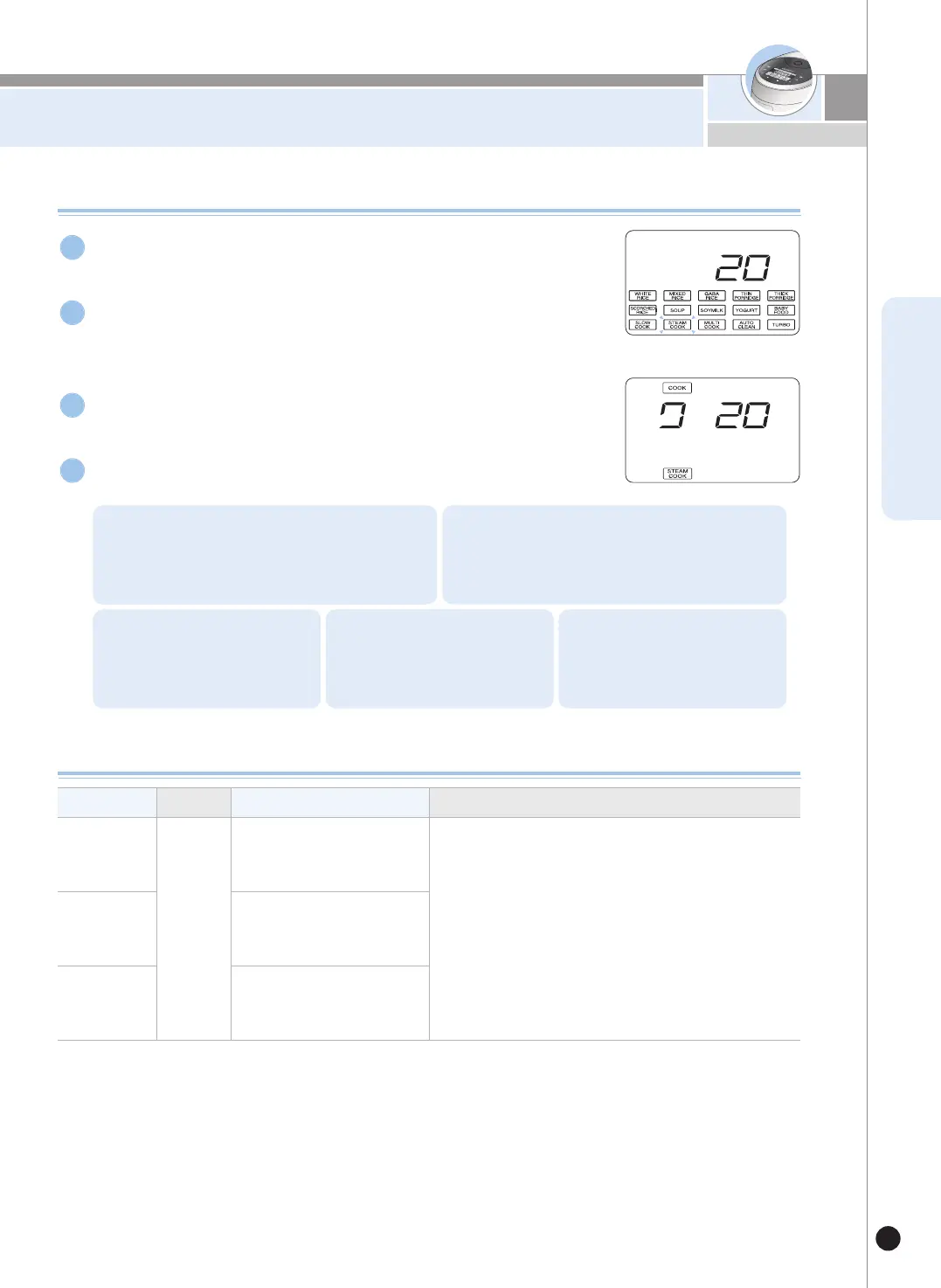 만능찜 메뉴가 선택 되었을때는 표시부에 20분이 표시됩니다.