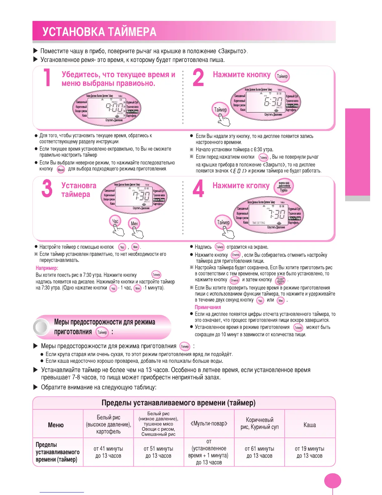 Cuckoo CRP-A1010FA - Setting the Timer; Timer Setting Procedure; Precautions for Timer Mode