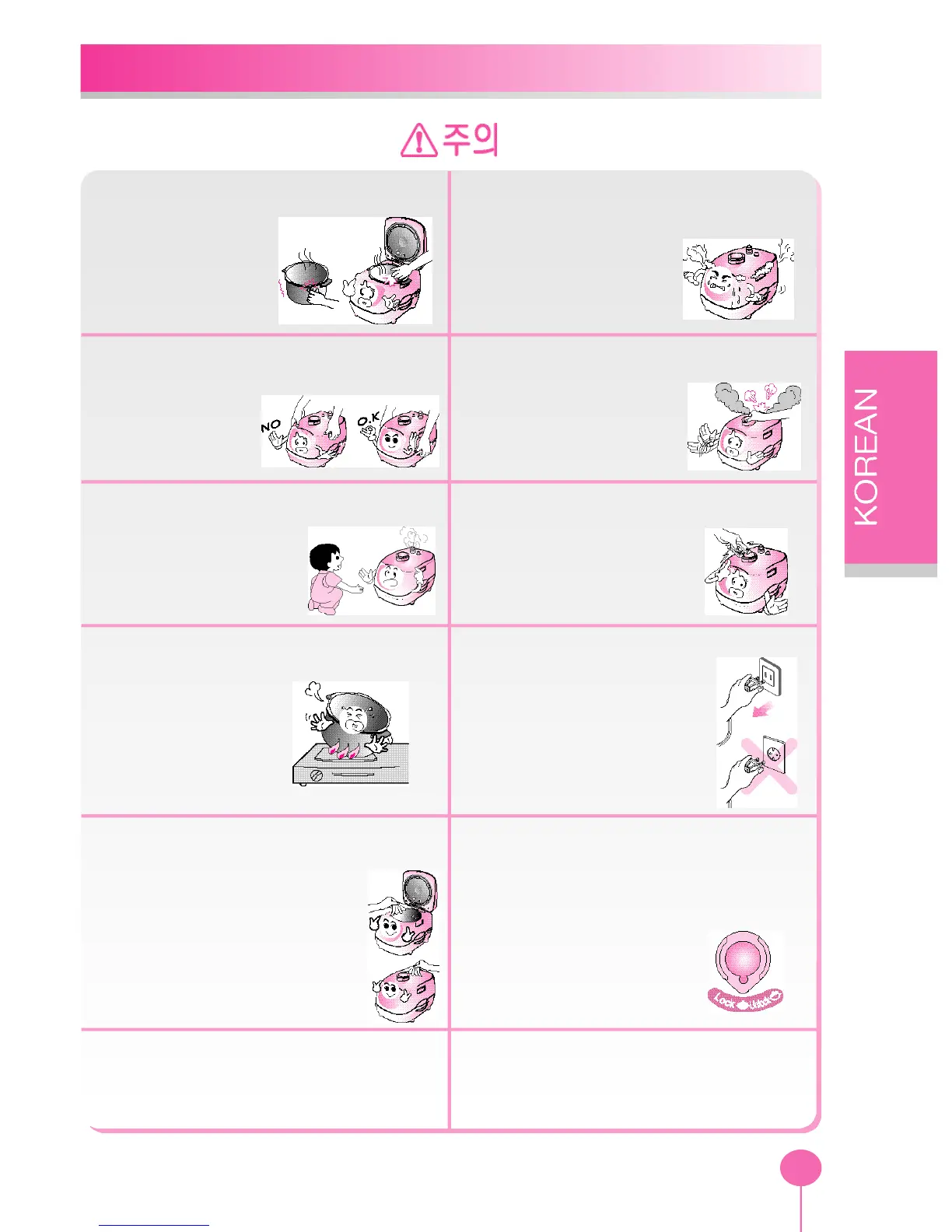 밥물 넘침이나 취사 불량 등 고장의 원인이 됩니다.