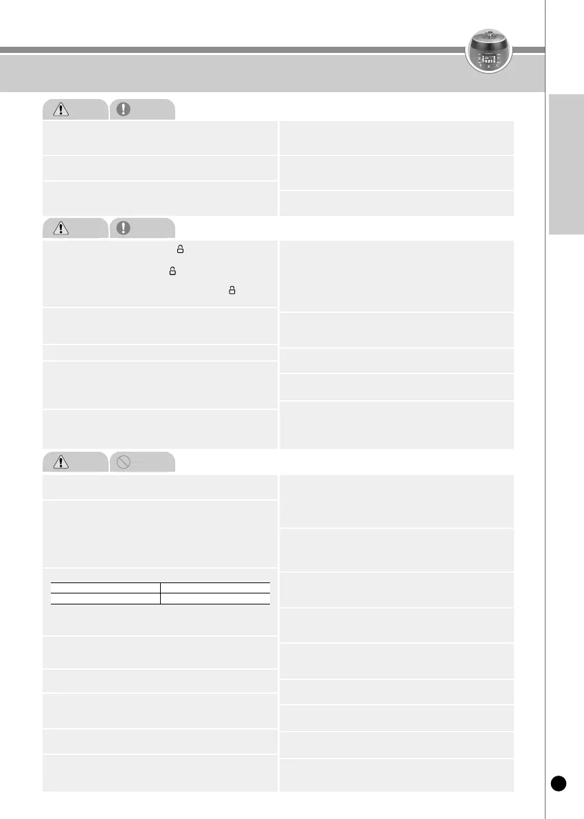 취사 또는 요리 진행 중 정전이 되면 자동증기 배출 장치가 작동하여 내용물 비산의 우려가 있습니다.