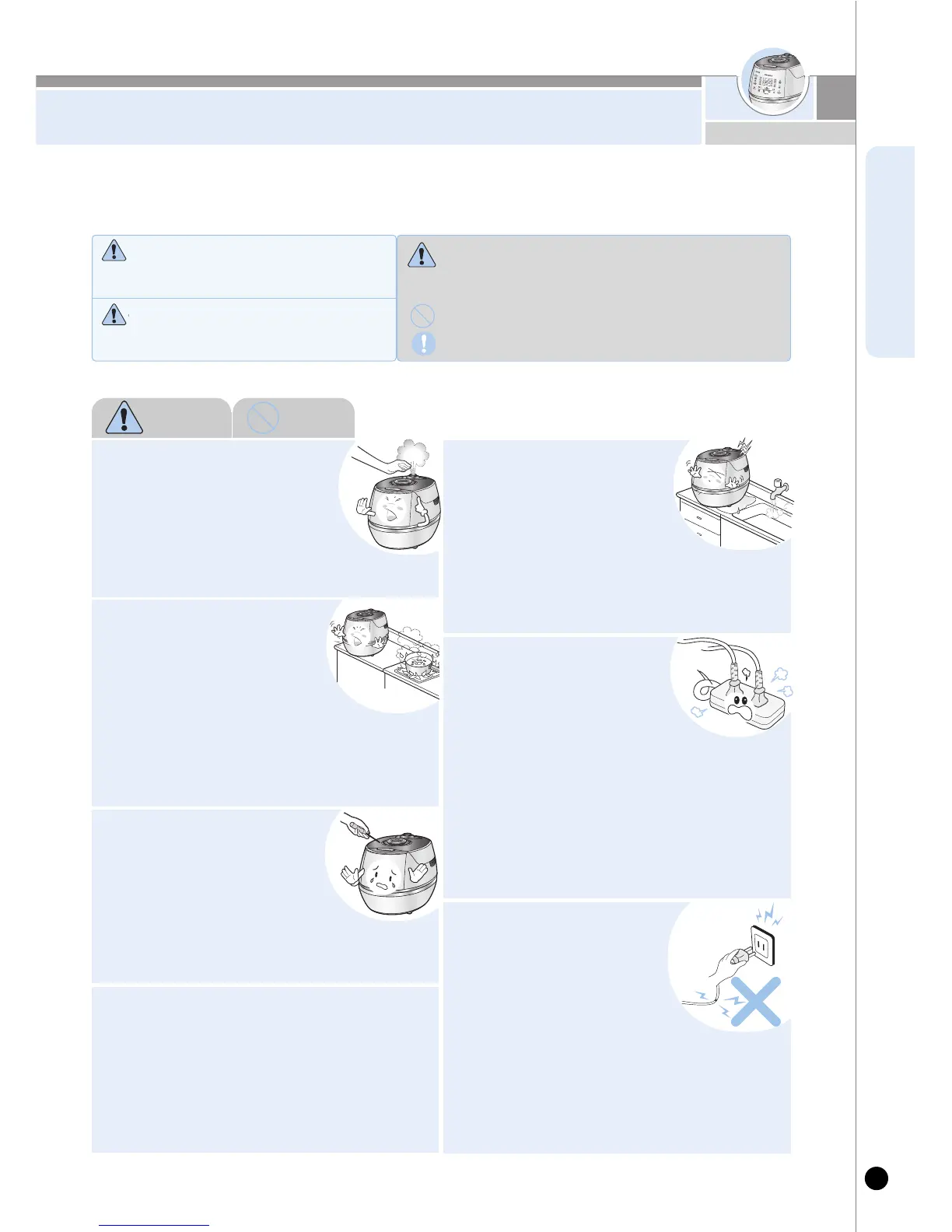 Do not let the cooker contact any water