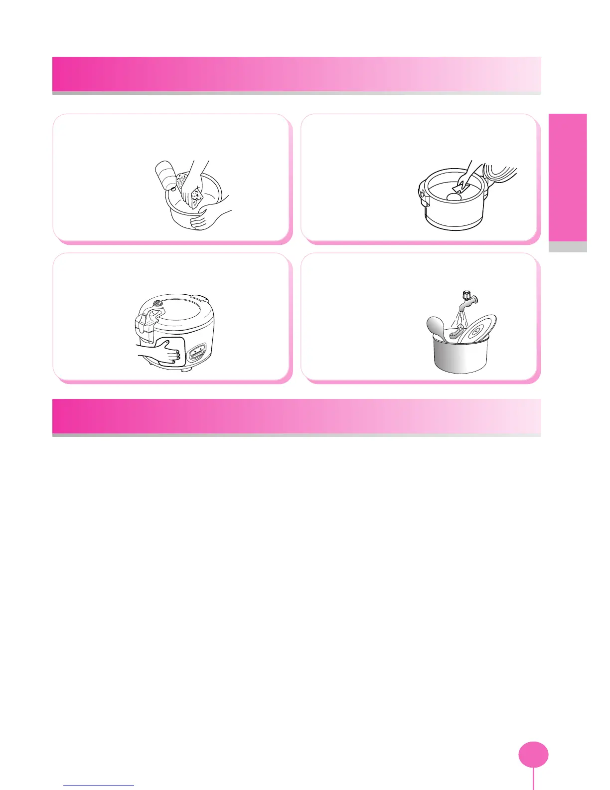 4. 내솥을 밥 취반외 다른 용도로 절대 사용하지 마십시오. 만일 다른 용도로 사용을 했을시에는
