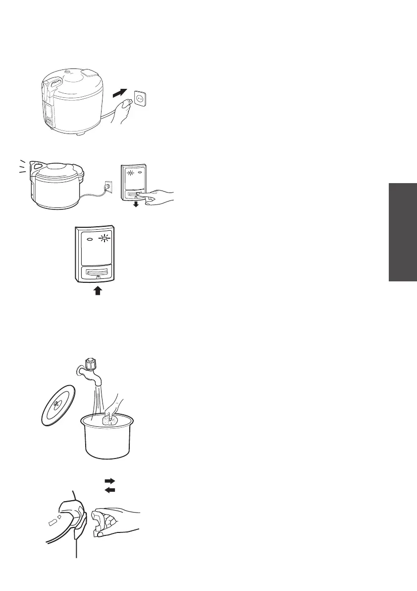 1.●Plug the cord immediately before switching on.