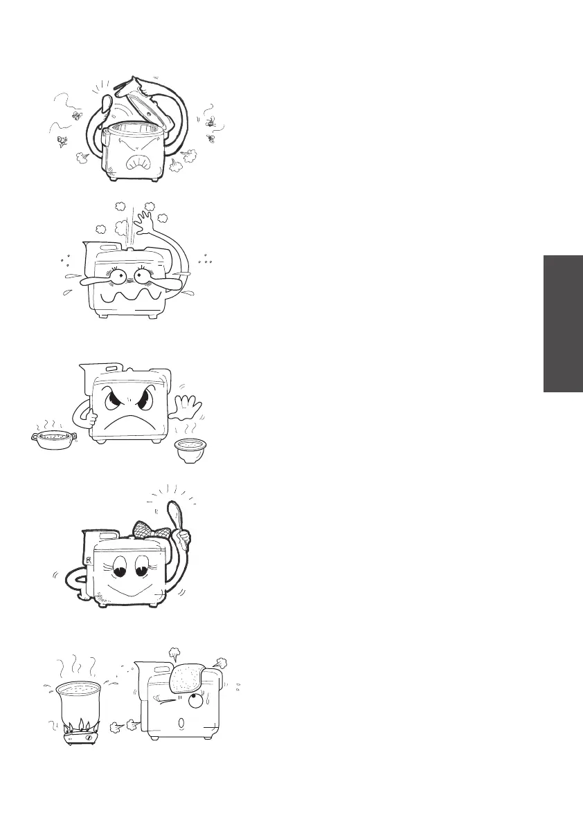 When cooking boiledrice there is coming out hot steam