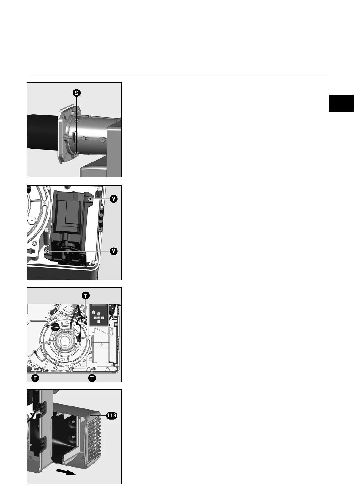 • Loosen the 3 securing screws S on the