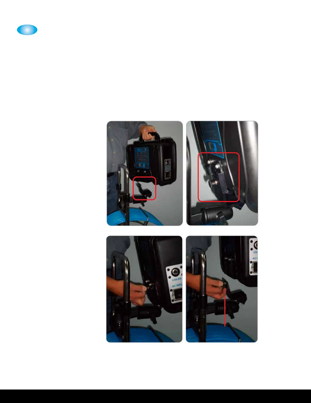 attaching to the coiler. The quick-connect “click-lock” feature is a no-hand locking