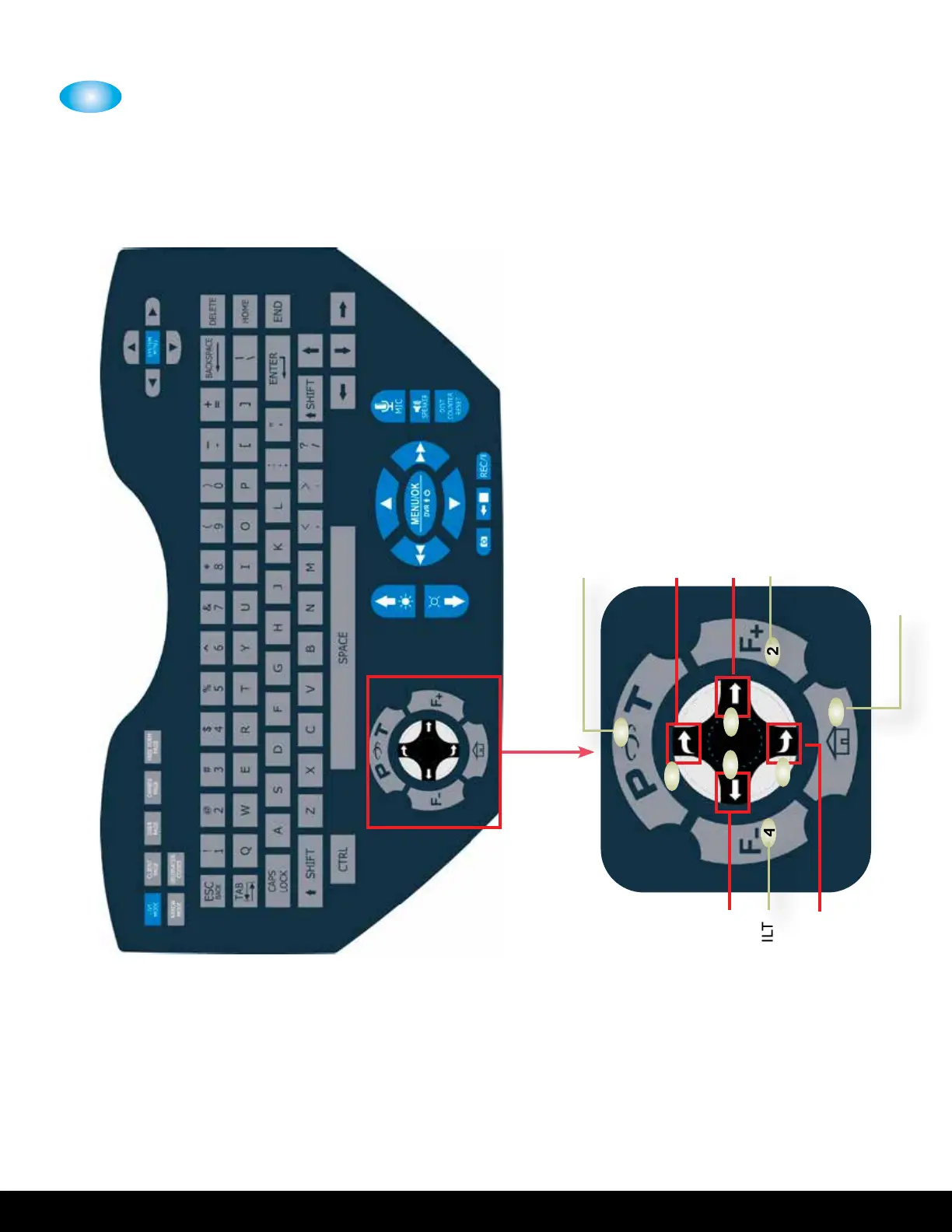 CURVED RIGHT ARROW AT TOP OF DPAD ROTATE PAN & TILT