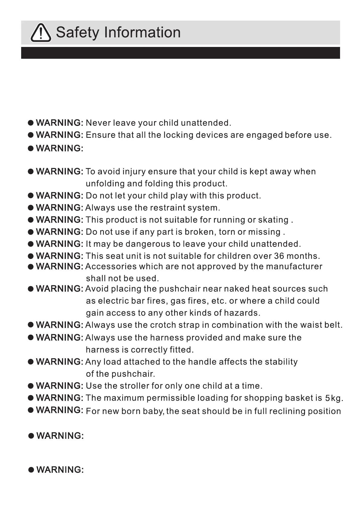 36 months. The max load of the stroller is 15kg, never over loaded.