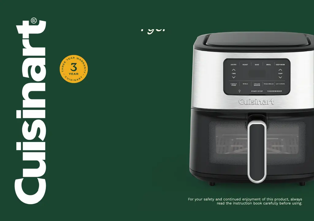 If your Cuisinart Fryer isn't turning on, there are a couple of things to check: First, ensure that the unit is properly plugged into a working electrical outlet. Second, make sure that the Air Fryer basket is correctly and securely placed inside the unit.