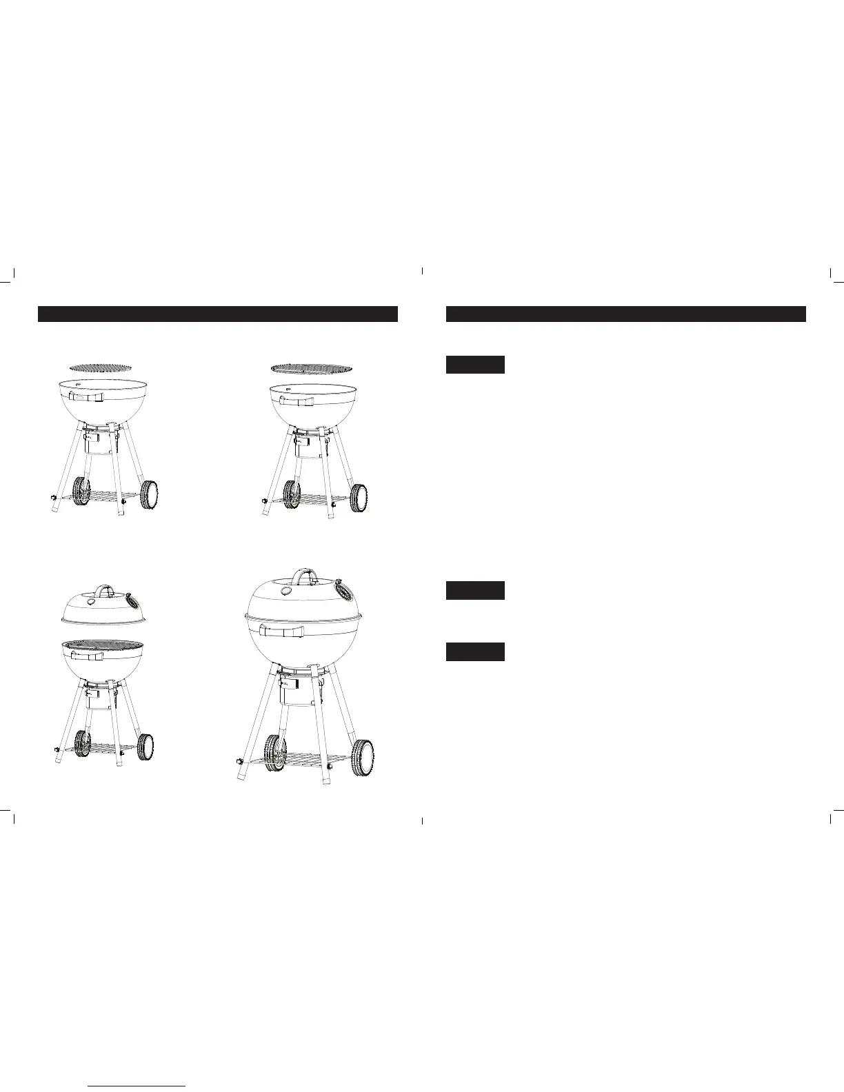 • Do not overll charcoal grate. Excess charcoal may cause a re, or may cause damage to your grill.