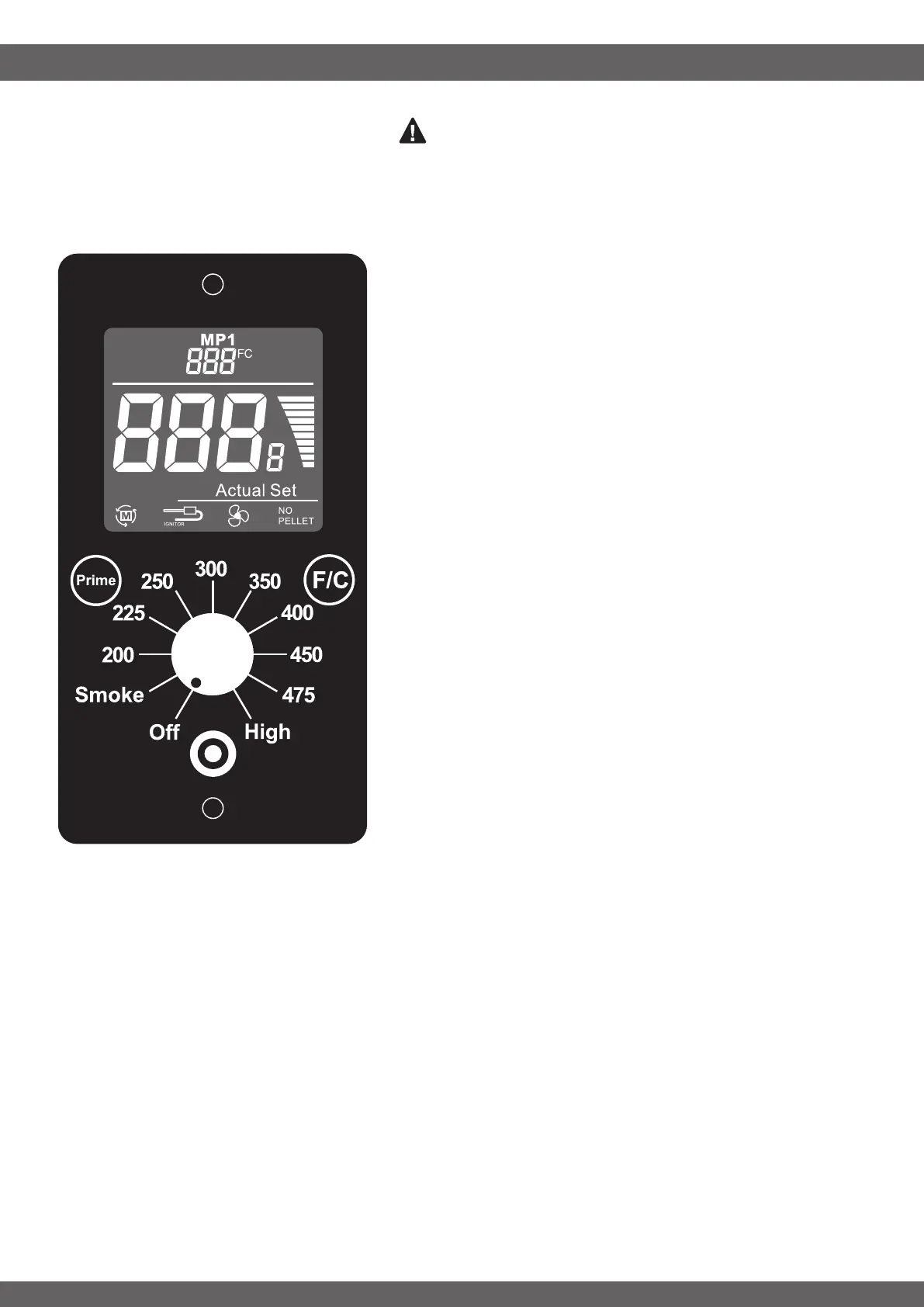 • Prime: Press and hold the Prime Button to activate an extra feed of pellets to the fire pot. This can
