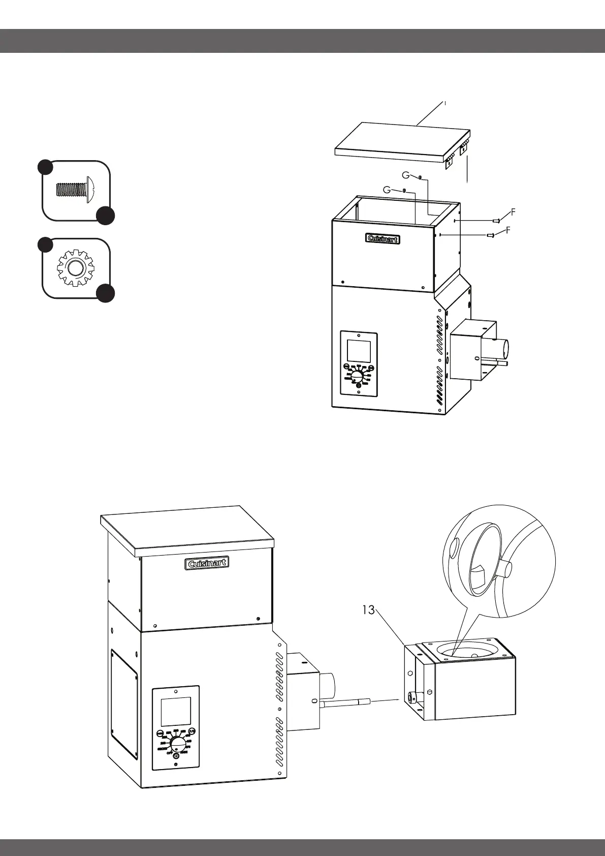 • Attach the Hopper Lid (1) to the hopper by