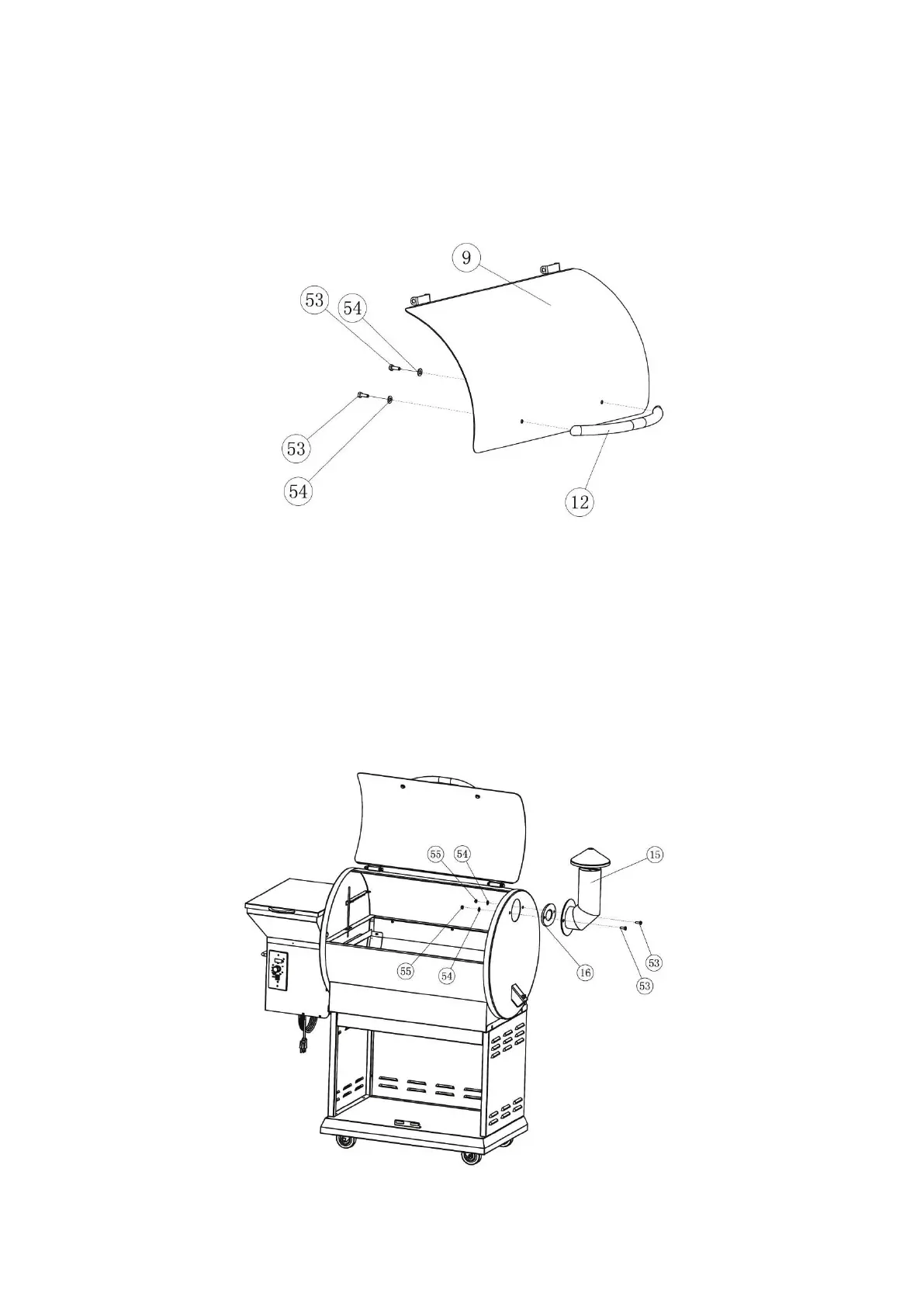 ILWV EHWZHHQ ULJKW HQG RI WKH *ULOO DQG WKH 6PRNH 6WDFN ,QVHUW WKH +H[DJRQ %ROWV