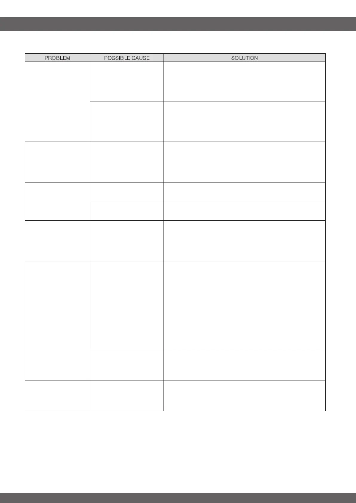 PROBLEM POSSIBLE CAUSE SOLUTION