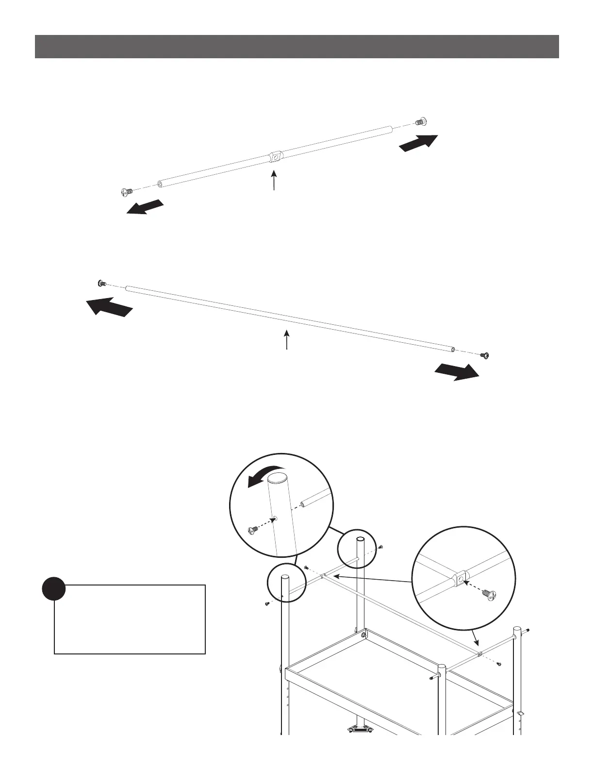 • Insert the frame support beam B in to the bottom holes of the right legs and replace the screws.