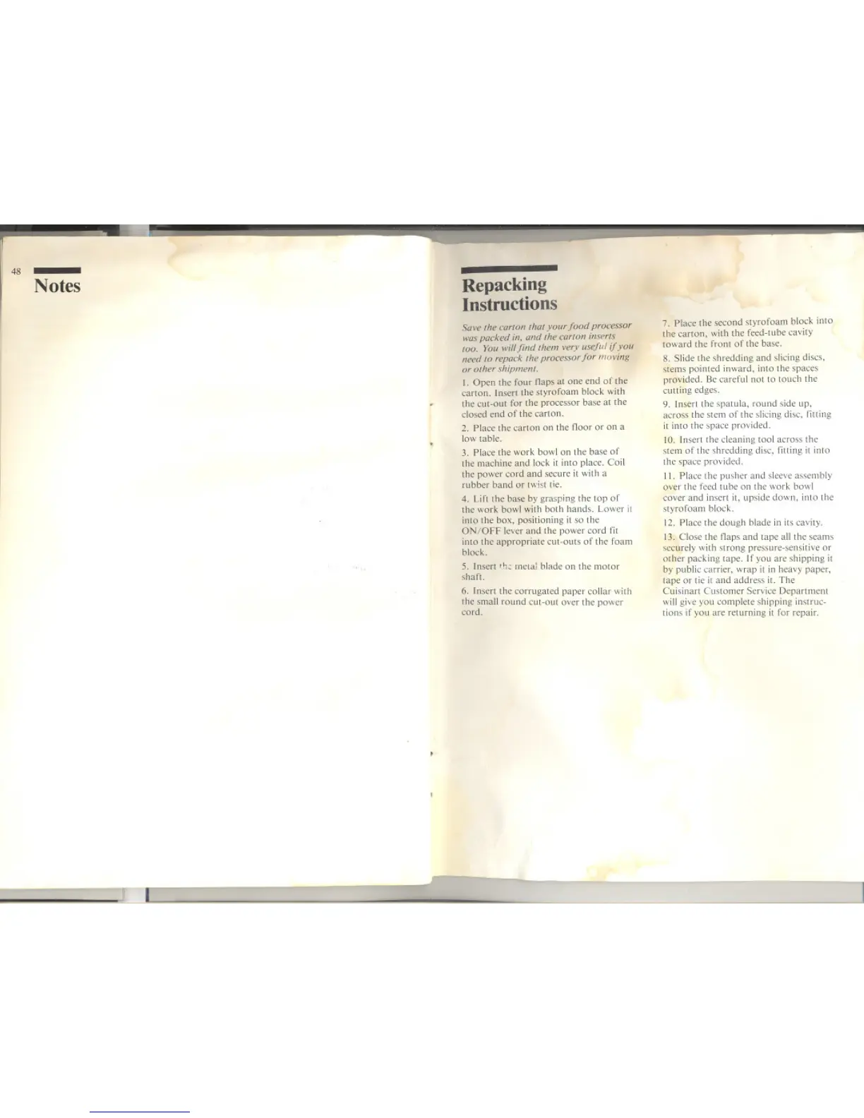 Cuisinart DLC-10E - Notes; Repacking Instructions