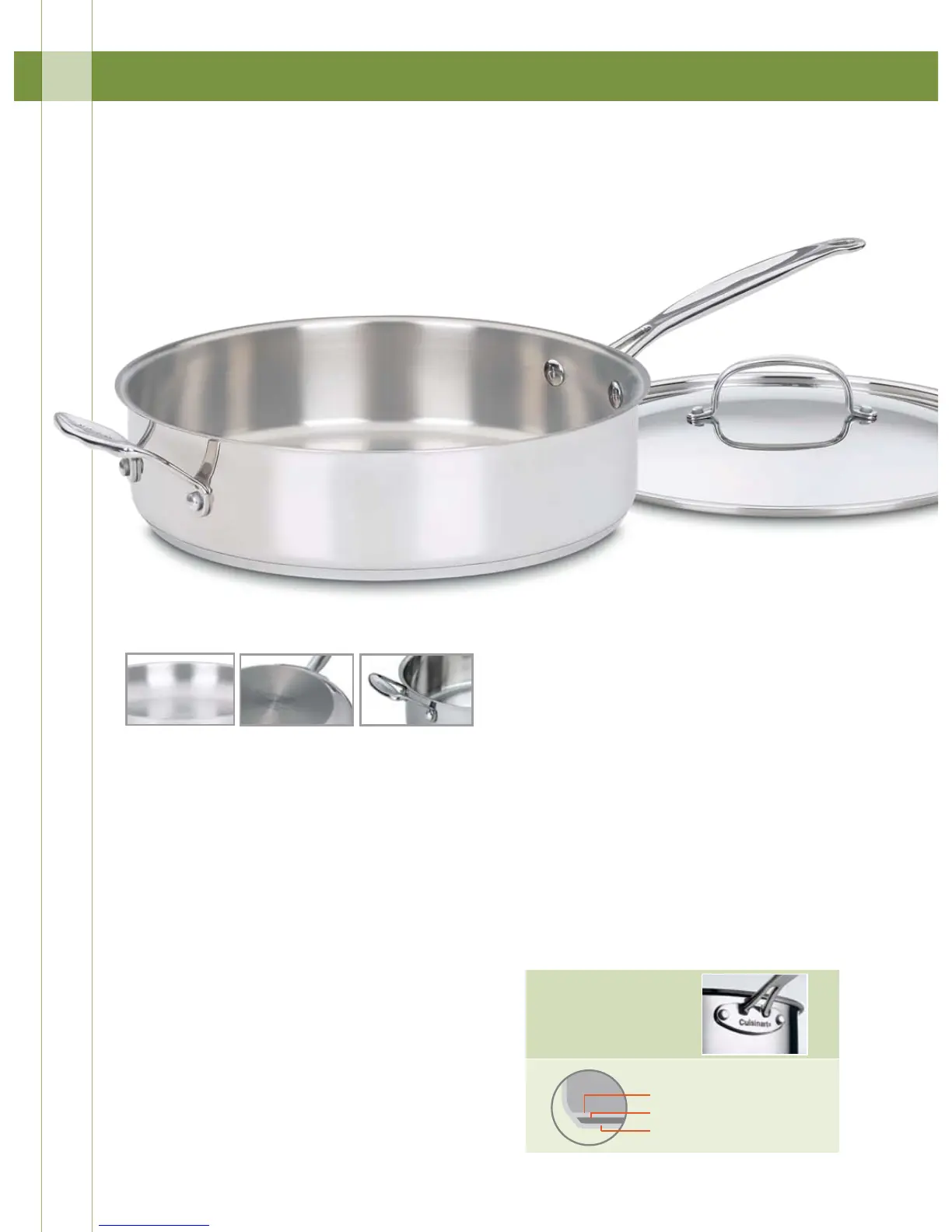 Solid stainless steel riveted stick handles stay cool on the stovetop.