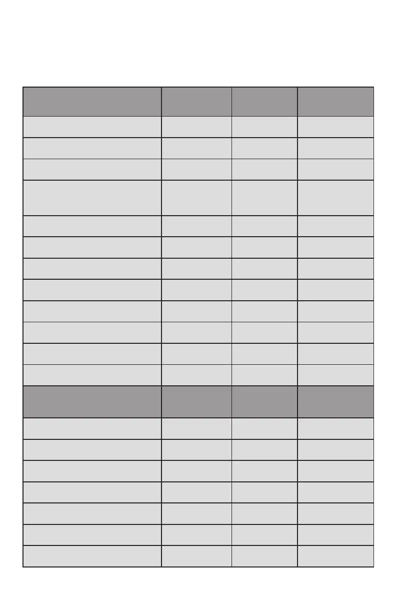 g. Tabla de sistemas y tiempos de cocción
