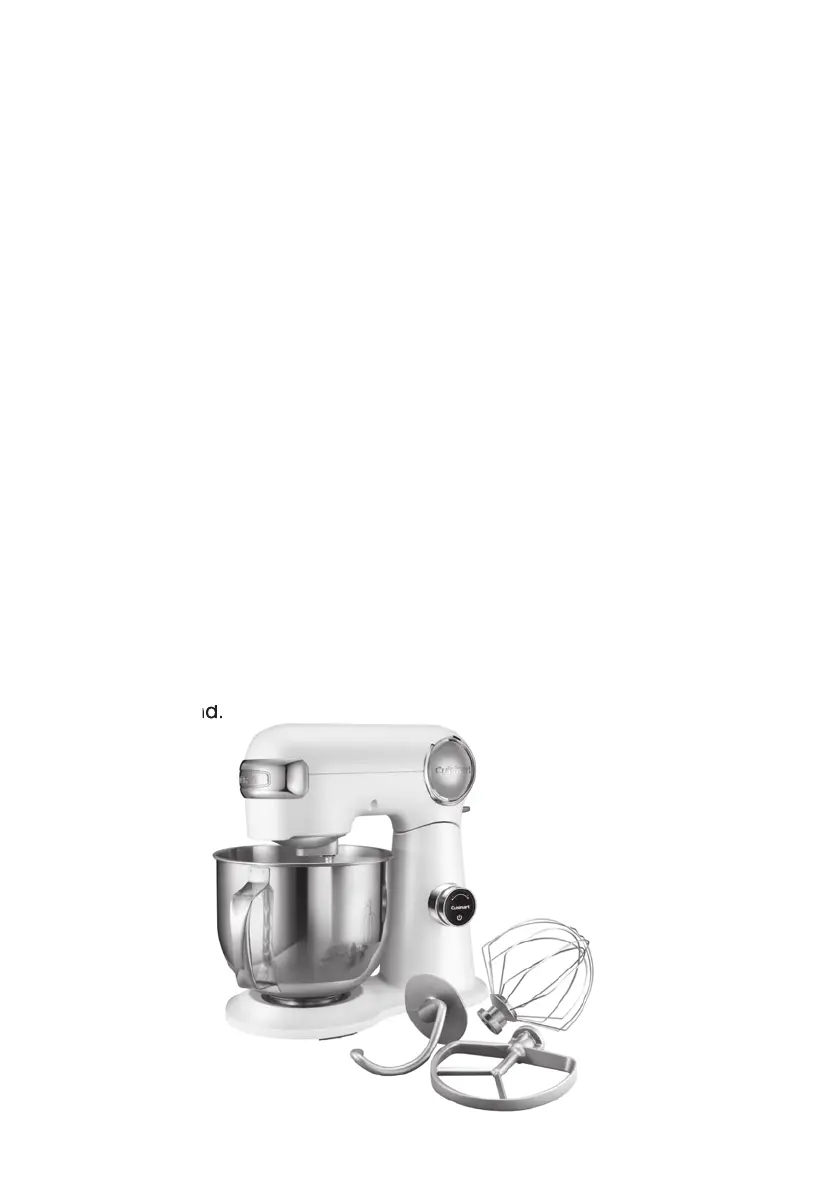 Premium attachments include chef’s whisk, at mixing paddle, dough hook,