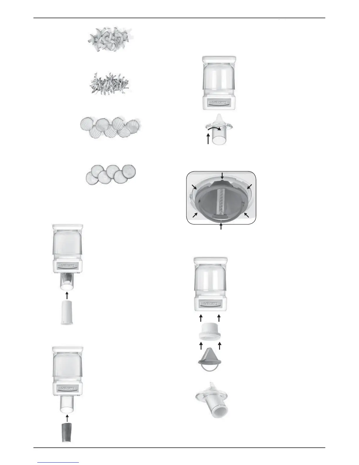 • Cono para rallado grueso de 9 mm/Espiral