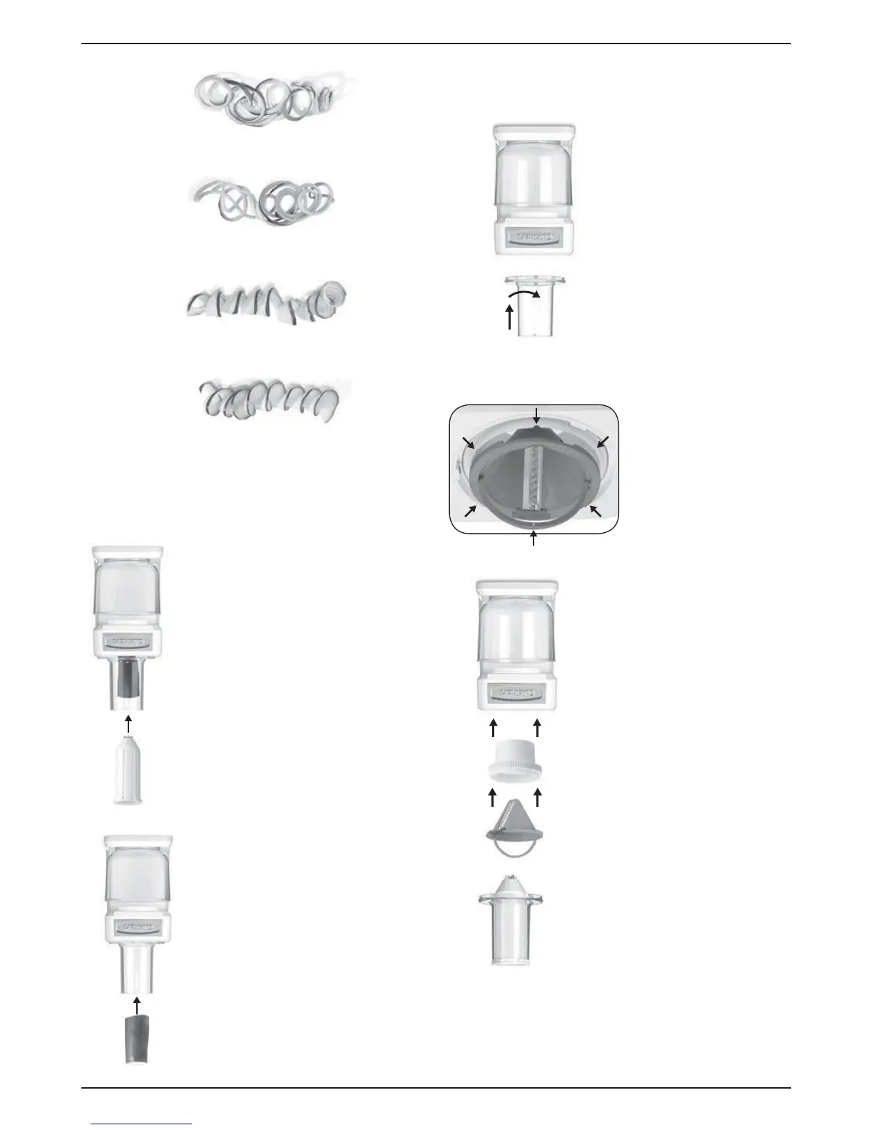 • Cono para rallado grueso de 9 mm/Espiral