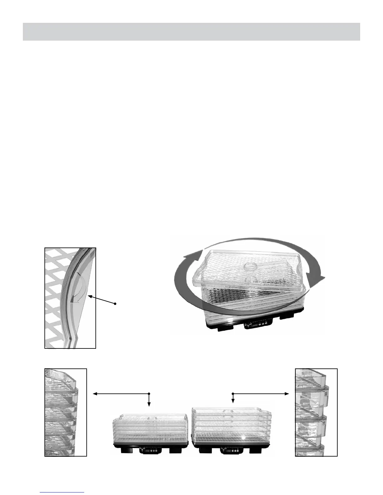 Any combination of stacking can be used to accommodate the foods being dried. An