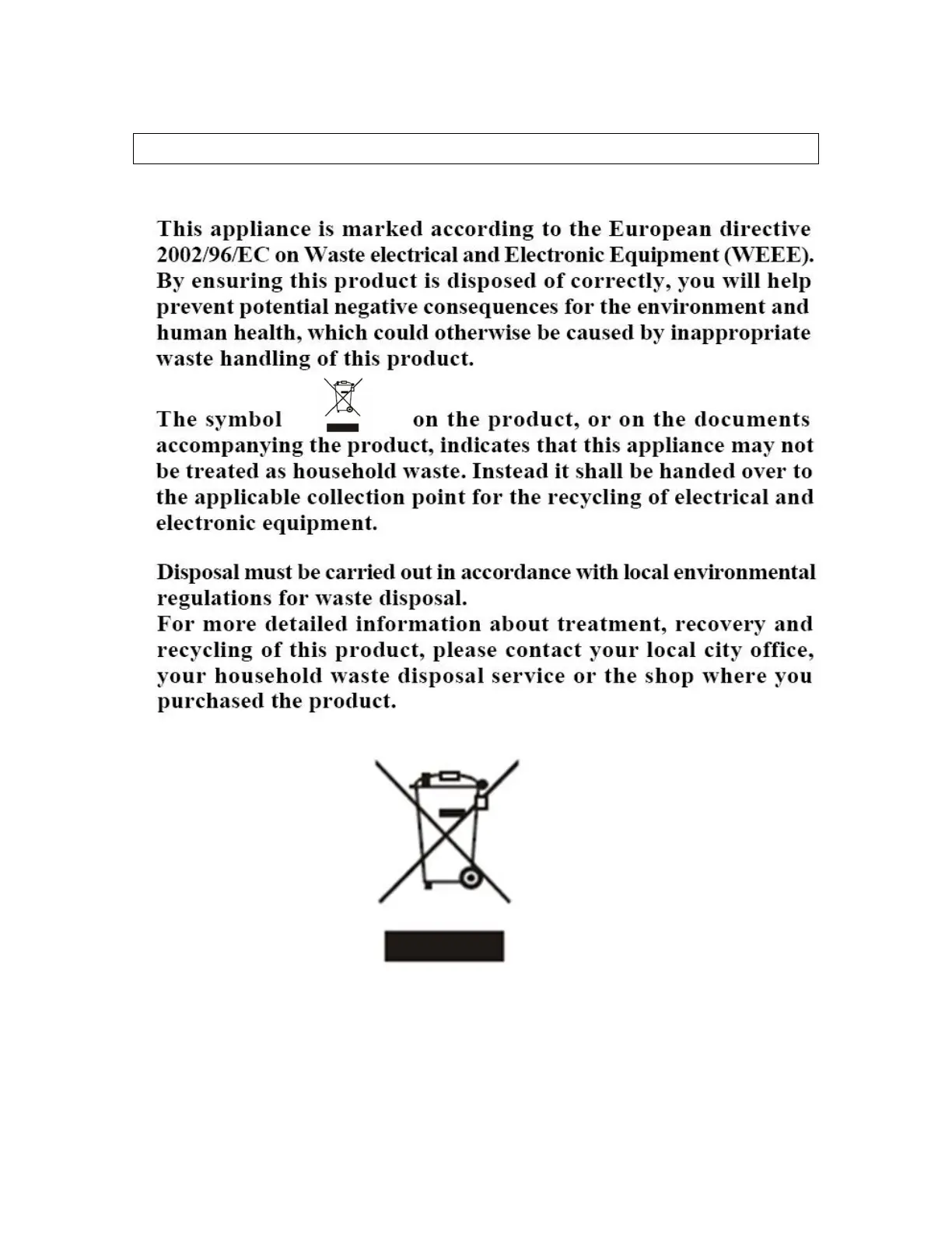 o Please discard all packaging material with due regard for the