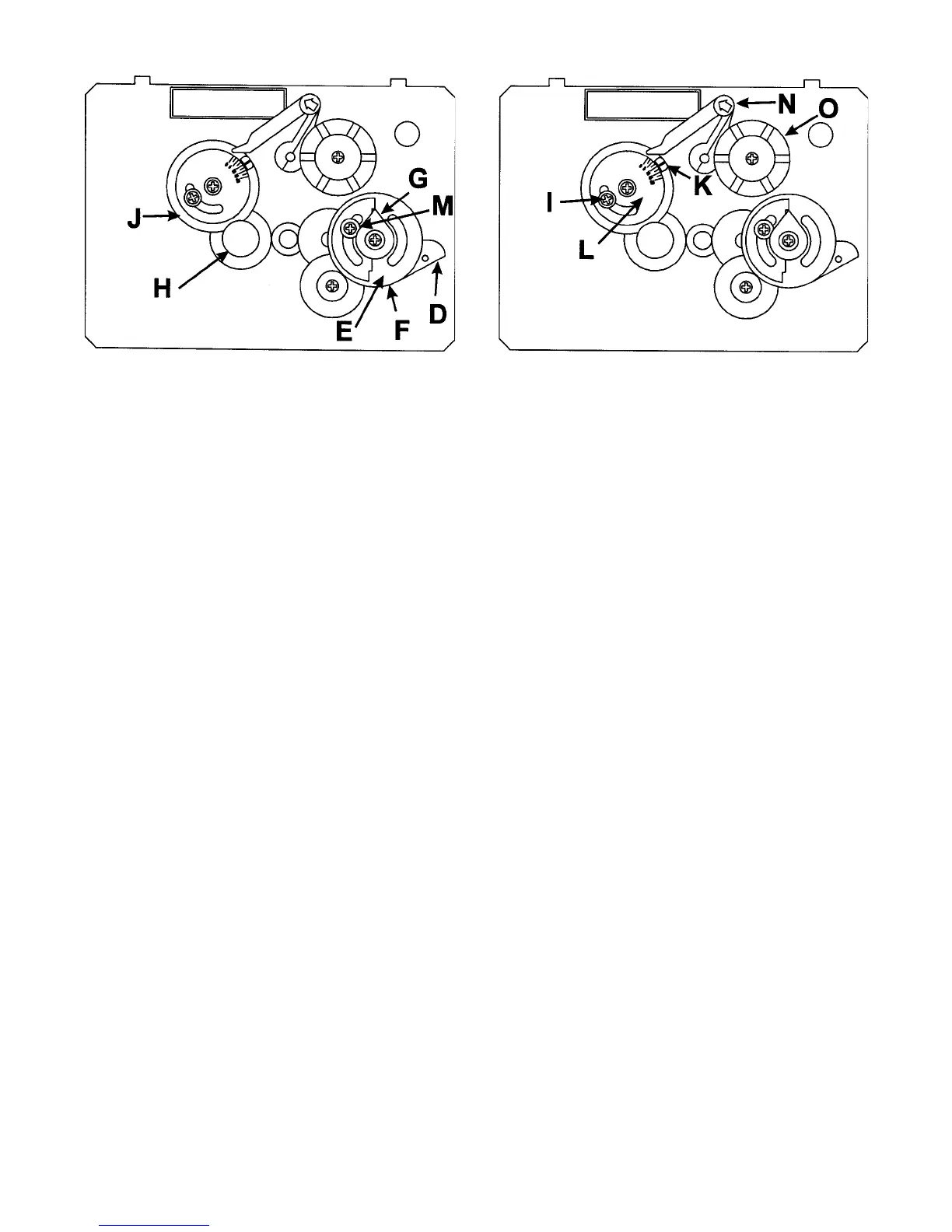less notch in the cam gear (J) is over the teeth on the idler