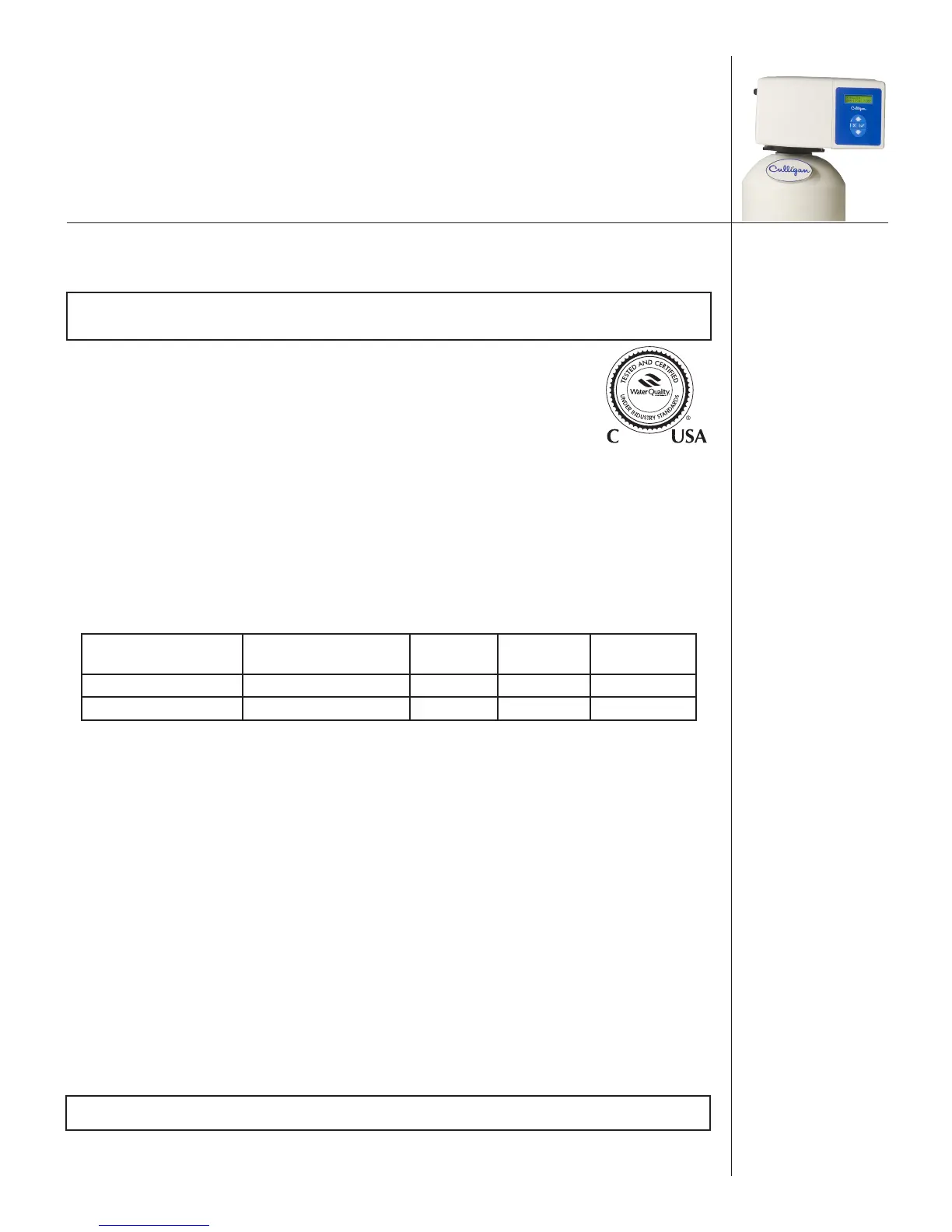 against NSF/ANSI Standard 372, CSA B483.1, NSF/ANSI Standard 44 for the effective reduction of hardness (calci-