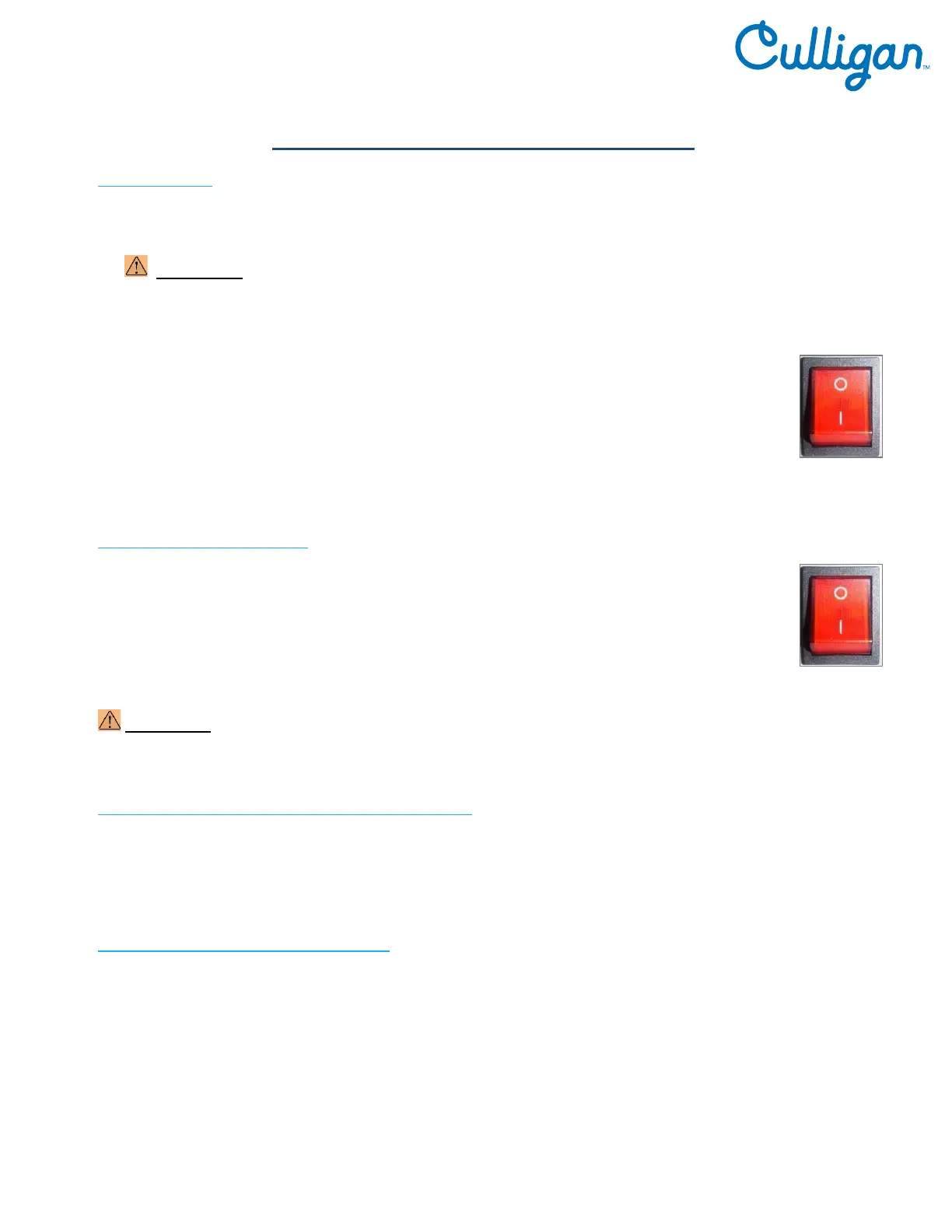 O=OFF, and dispense 2 Litres (½ Gallon) of hot water from the C100 Water Treatment