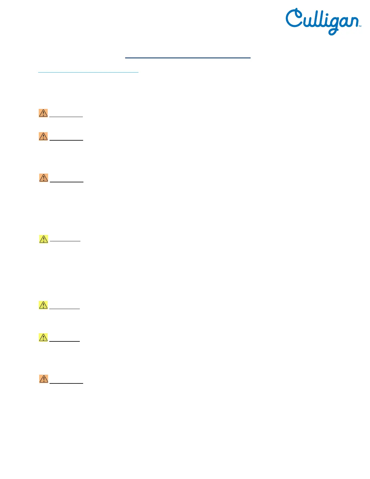 WARNING! ONLY USE A Culligan SUPPLIED POWER CORD. Locate system within 1 meter of