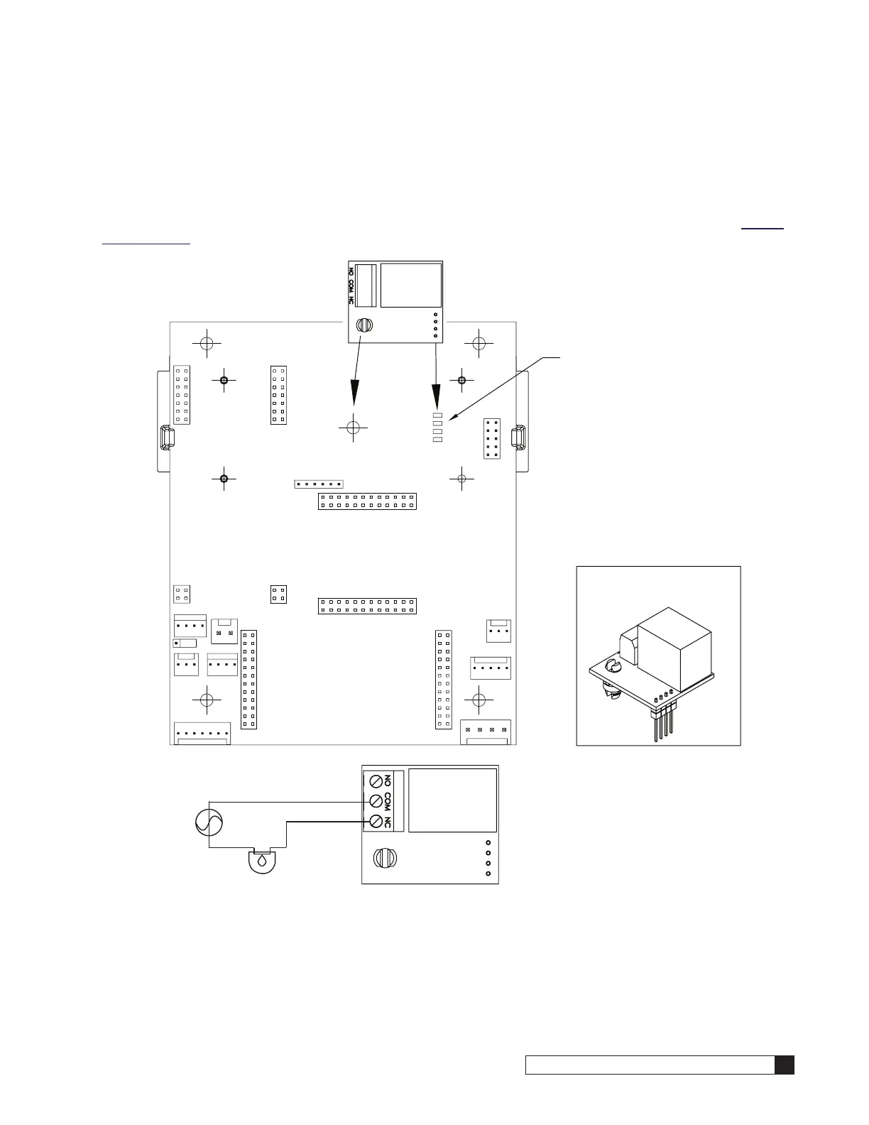 The GBE board offers support for the Auxiliary Output 5 Relay board (P/N 01022238). To use the relay board, install it