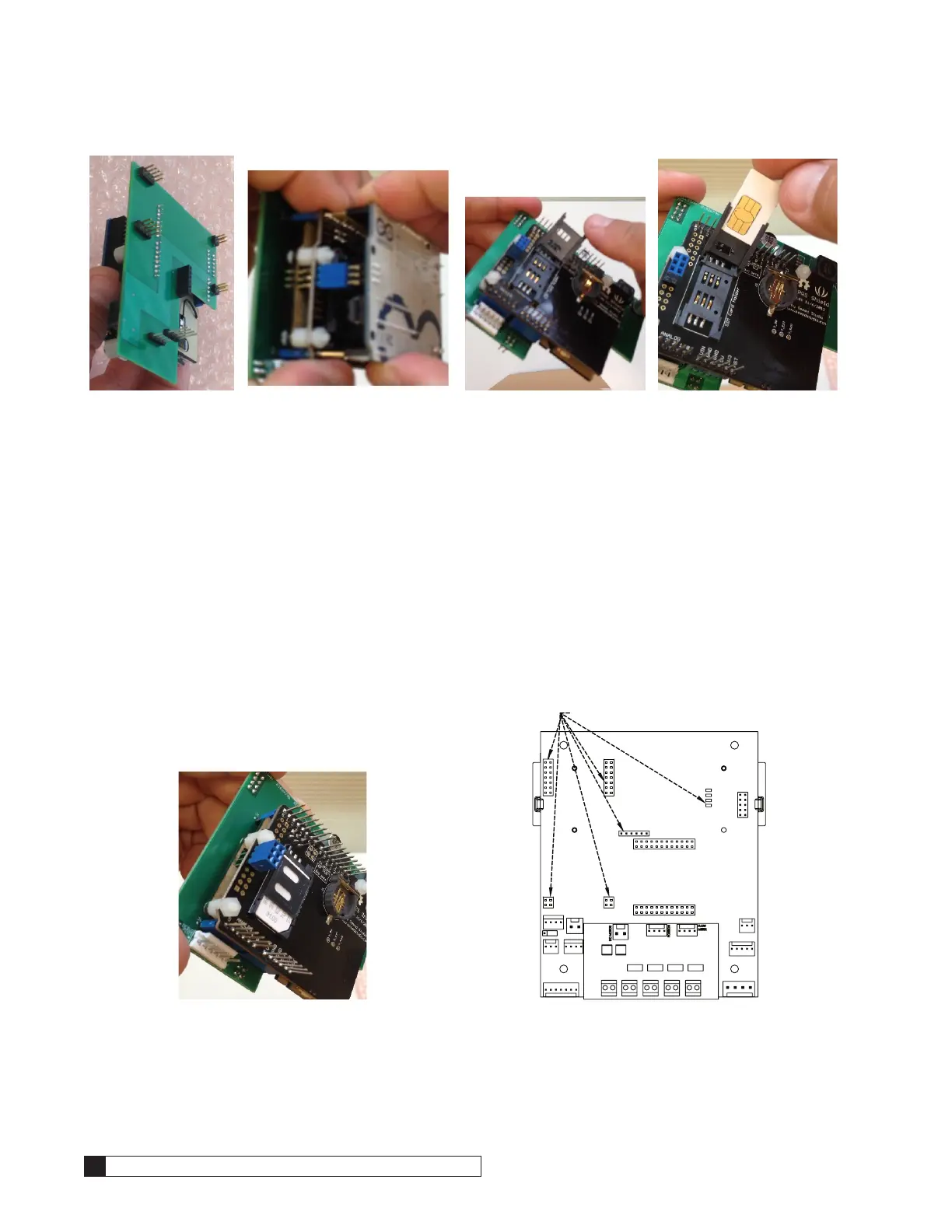 in the sockets where the modem or alarm relay boards are typically located. See Figure 50.