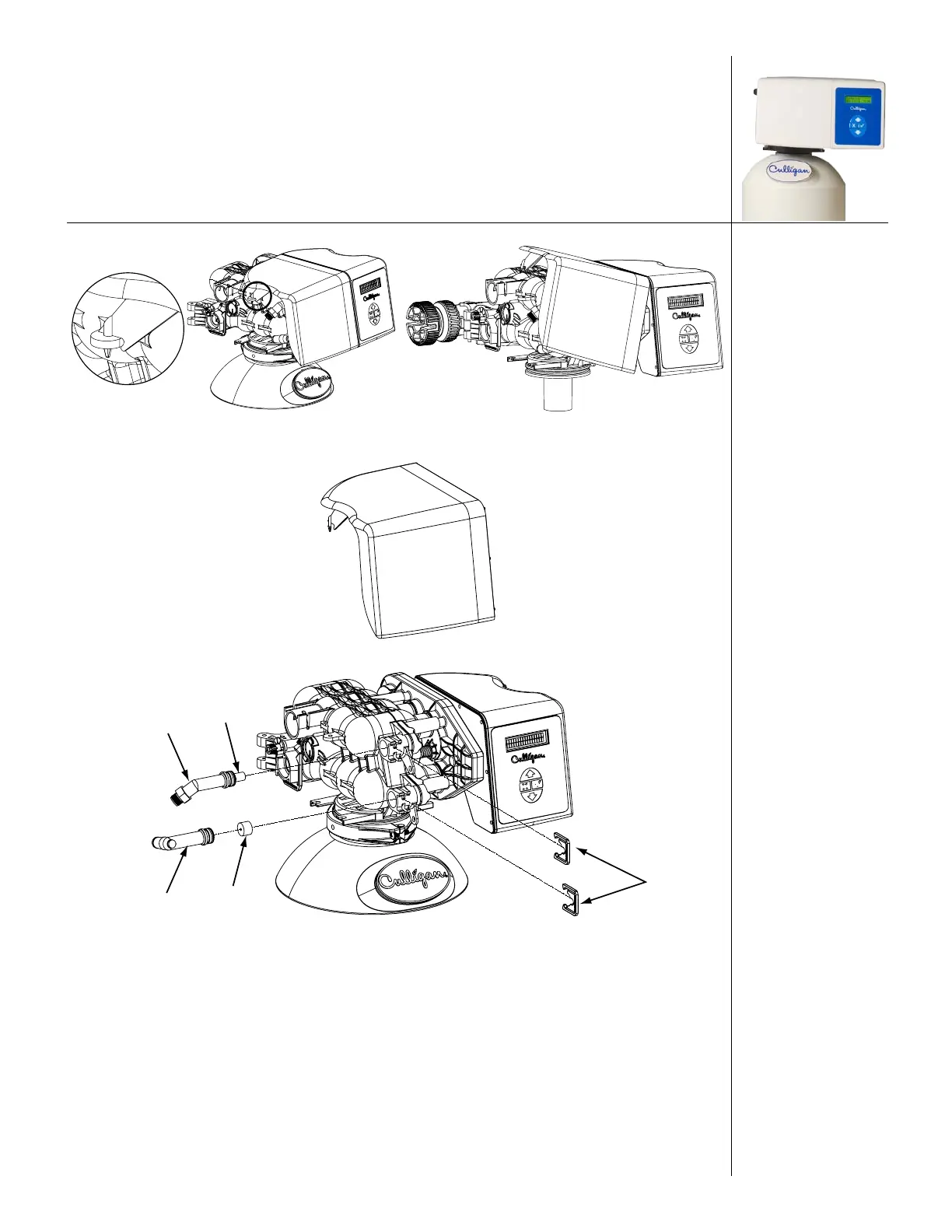 Once the drain and brine line is connected re-attach the cover. Refer to the below instructions and Figure