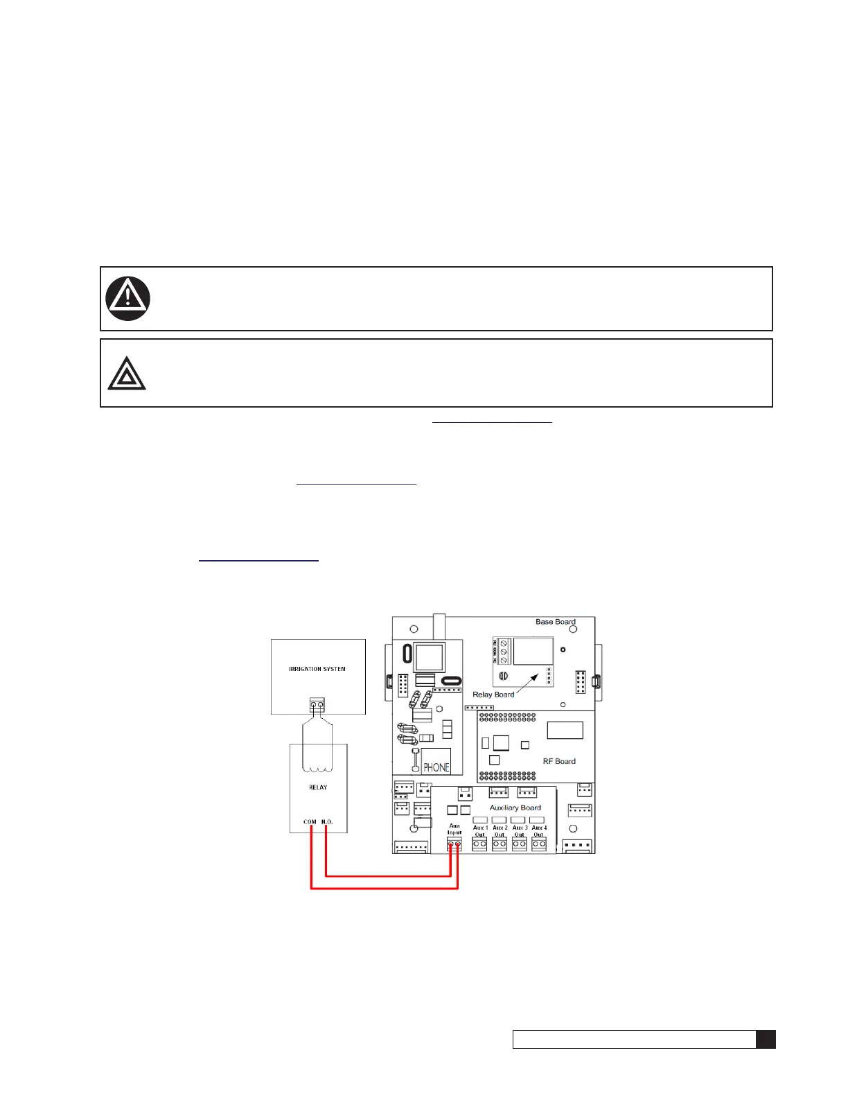 4. Connect the Aux Input terminals on the Auxiliary Board to the Common and Normally Open terminals of the