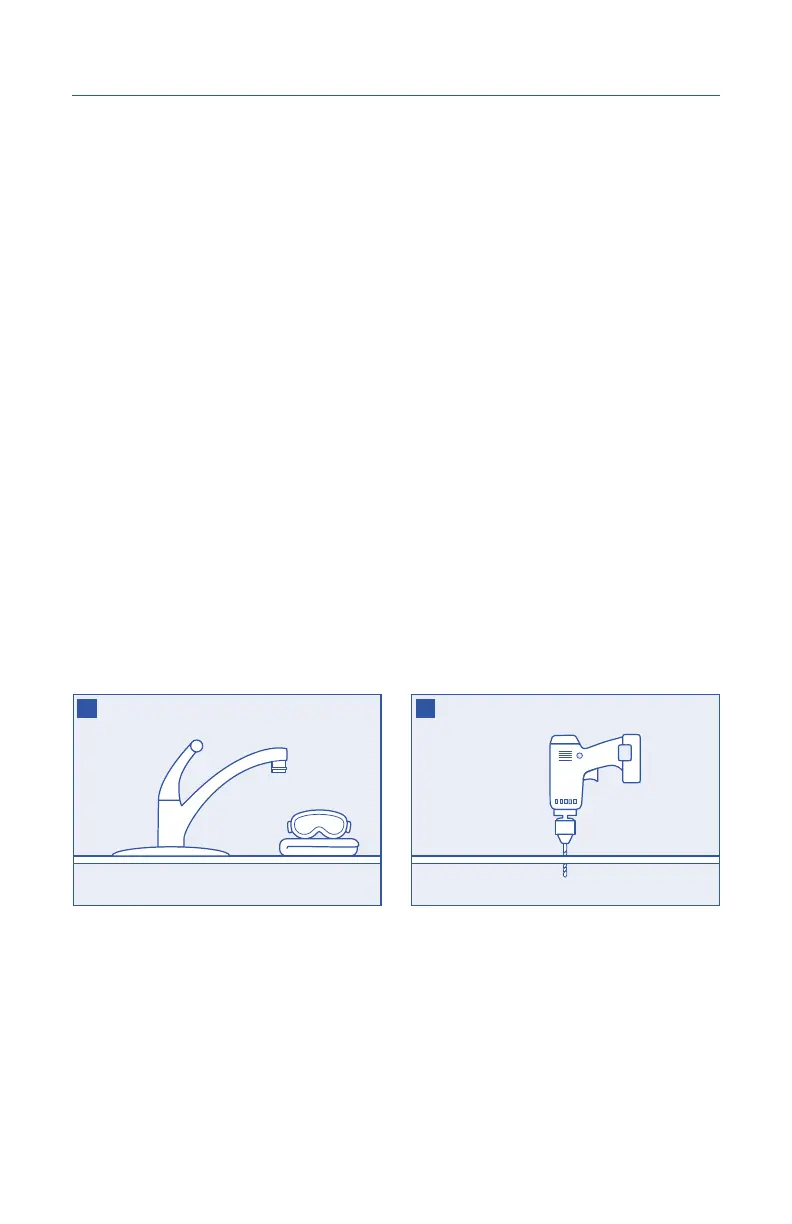 the countertop next to the sink. If the countertop must be drilled, make certain that the area below the