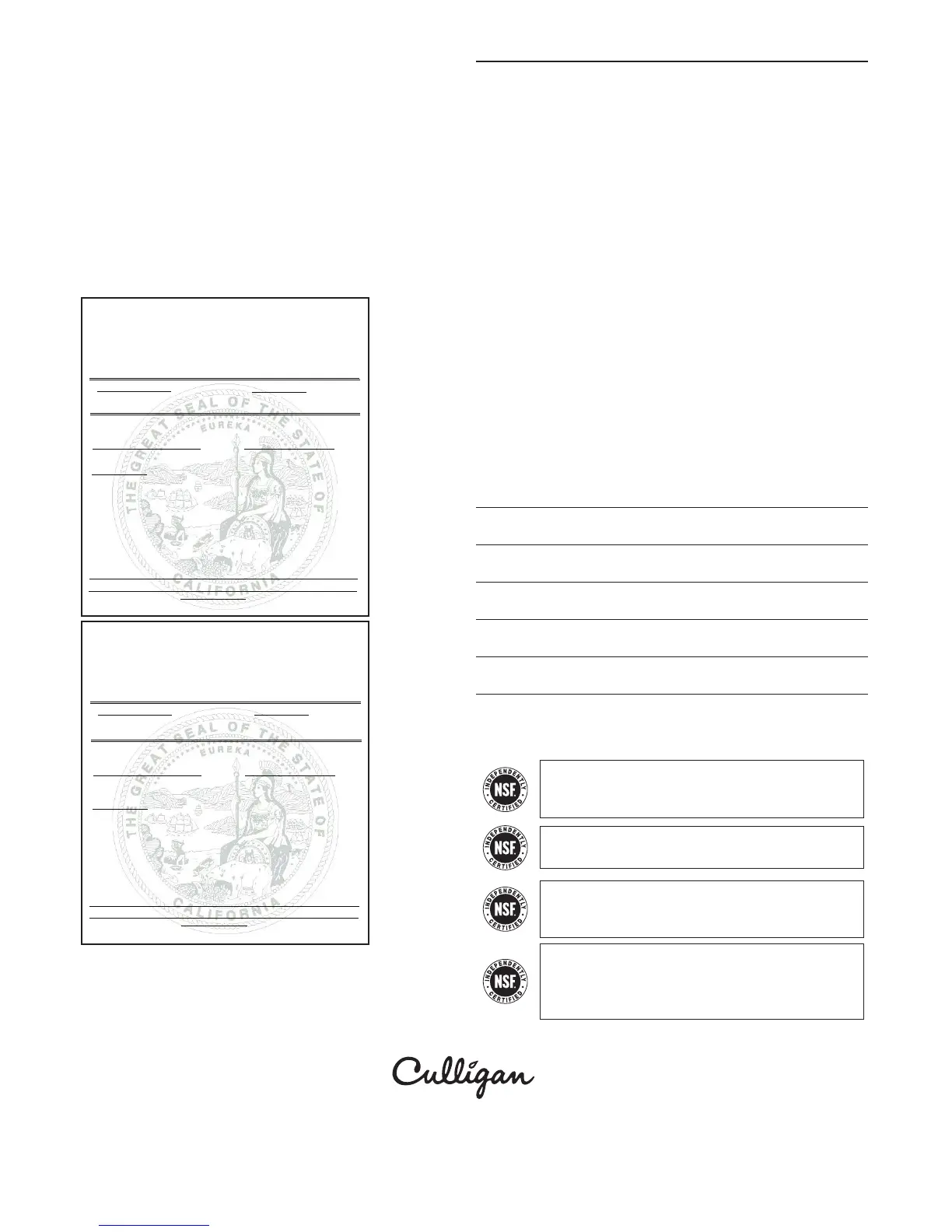 MIRE ABAJO POR LA GARANTÍA INDIVIDUAL APROPIADA A SU PRODUCTO CULLIGAN.