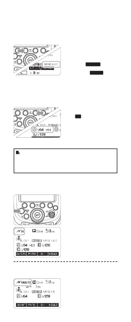 ● When setting < RATIO A:B C >, group A, B and C will fire a