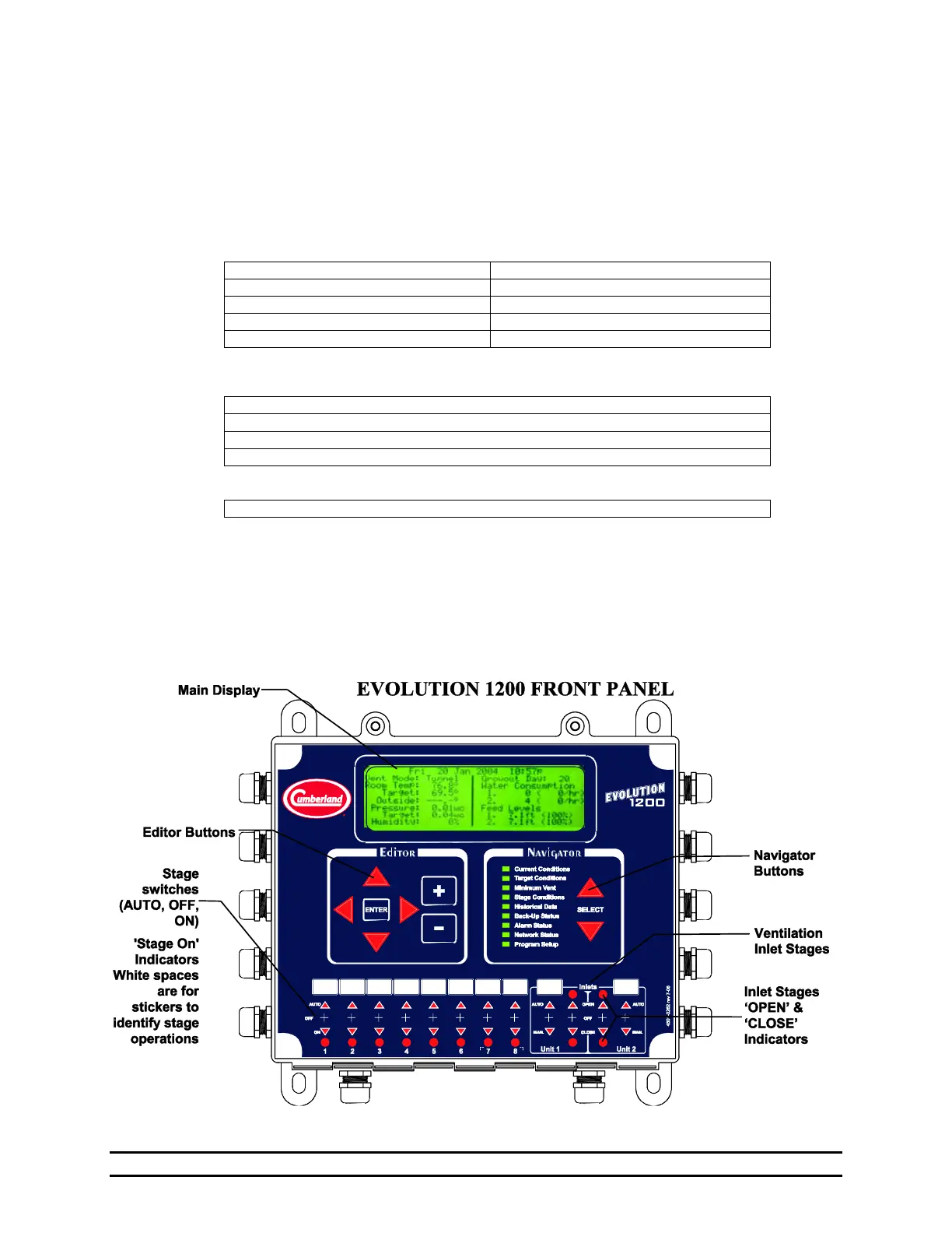 The Evolution 1200 Controller is divided into two main areas. On the top is the Main Control Panel