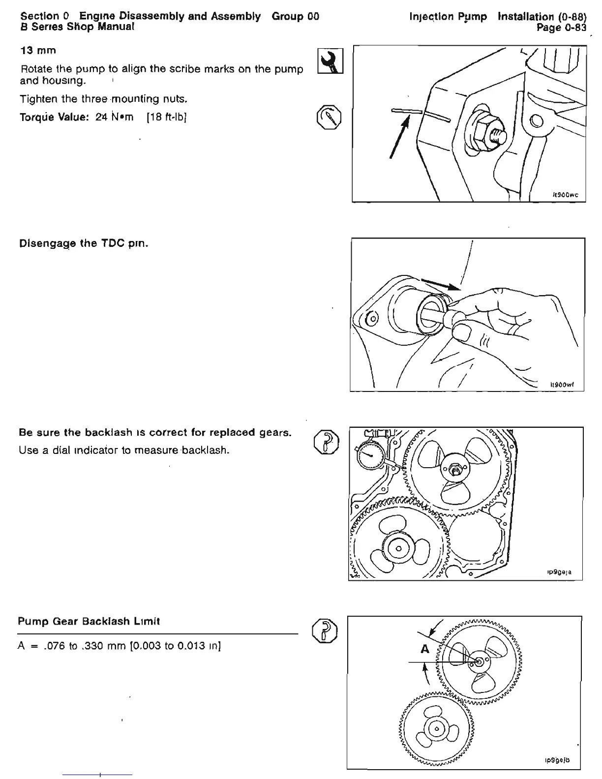 CUMMINS 5.9 - Disengage the TDC Pin; Pump Gear Backlash Limit