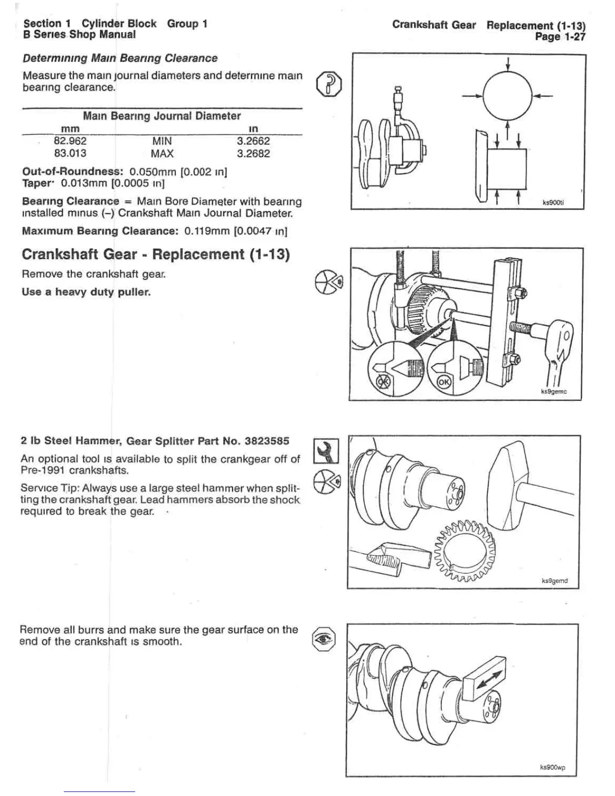 CUMMINS 5.9 - Crankshaft Gear-Replacement; Determining Mam Bearing Clearance