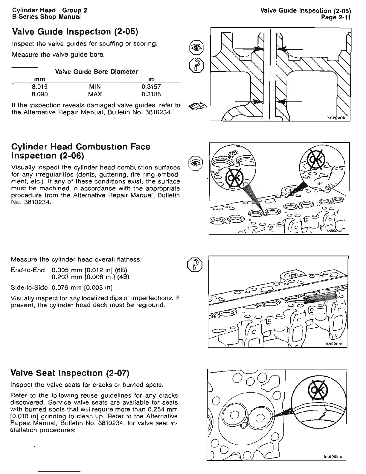 CUMMINS 5.9 - Valve Guide Inspection; Cylinder Head Combustion Face Inspection; Valve Seat Inspection