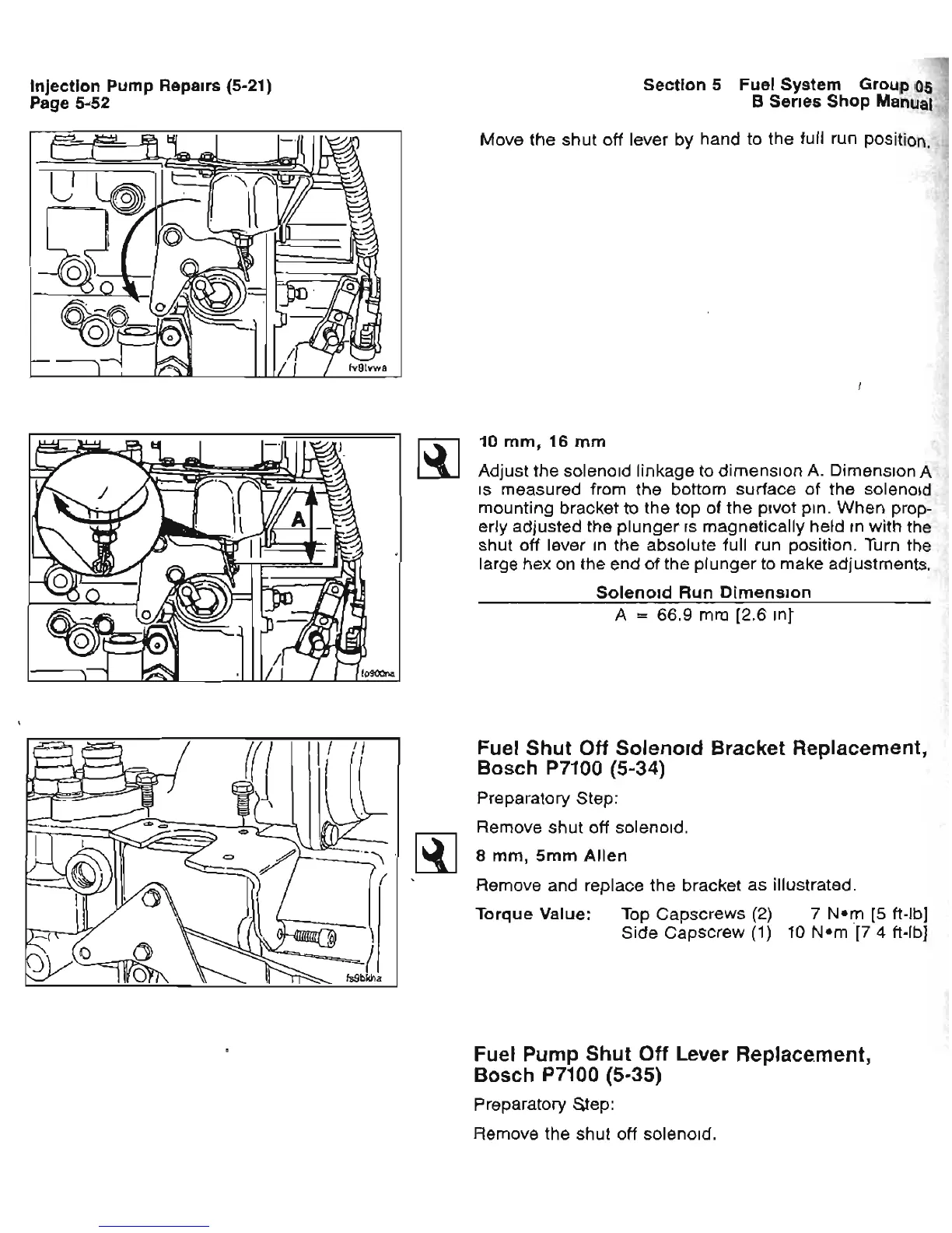 CUMMINS 5.9 - Fuel Shut off Solenoid Bracket Replacement, Bosch P7100; Fuel Pump Shut off Lever Replacement, Bosch P7100