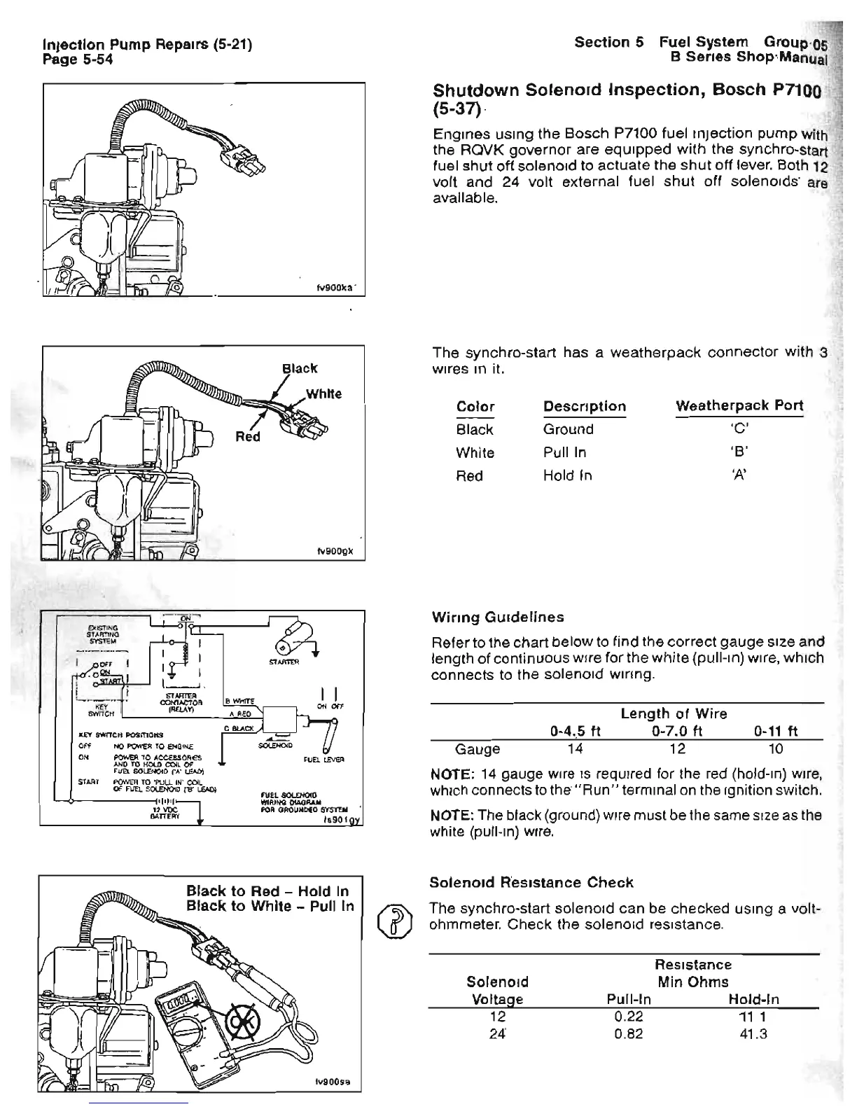 CUMMINS 5.9 - Shutdown Solenoid Inspection, Bosch P7100; Wiring Guidelines; Solenoid Resistance Check