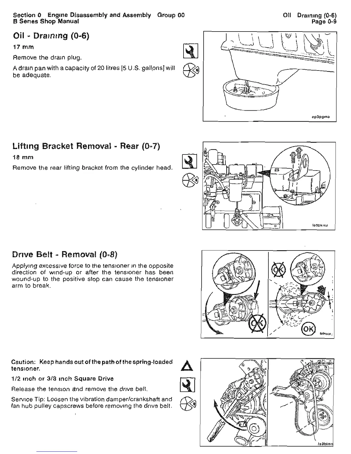 CUMMINS 5.9 - Oil-Draining; Lifting Bracket Removal-Rear; Drive Beit-Removal