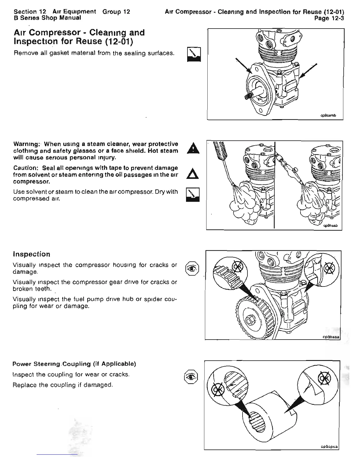 CUMMINS 5.9 - Air Compressor-Cleaning and Inspection for Reuse; Power Steering Coupling (if Applicable)