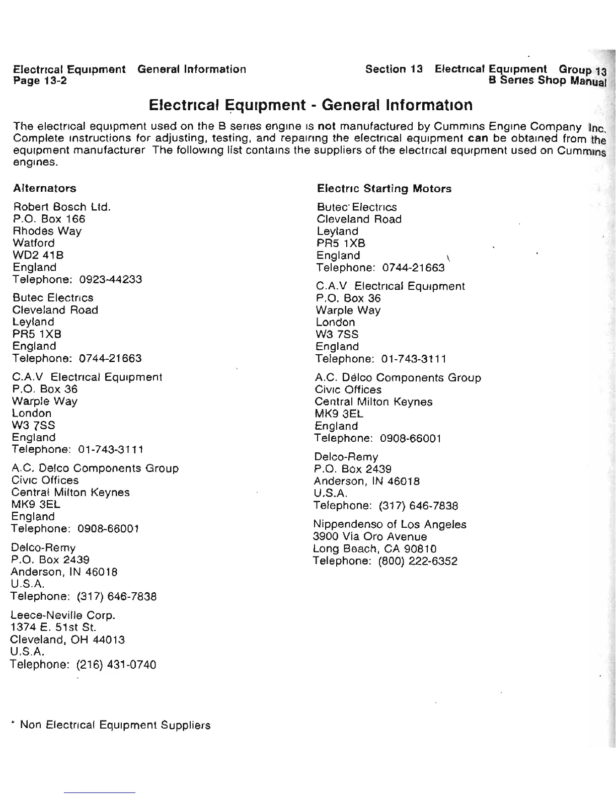 CUMMINS 5.9 - Electrical Equipment-General Information